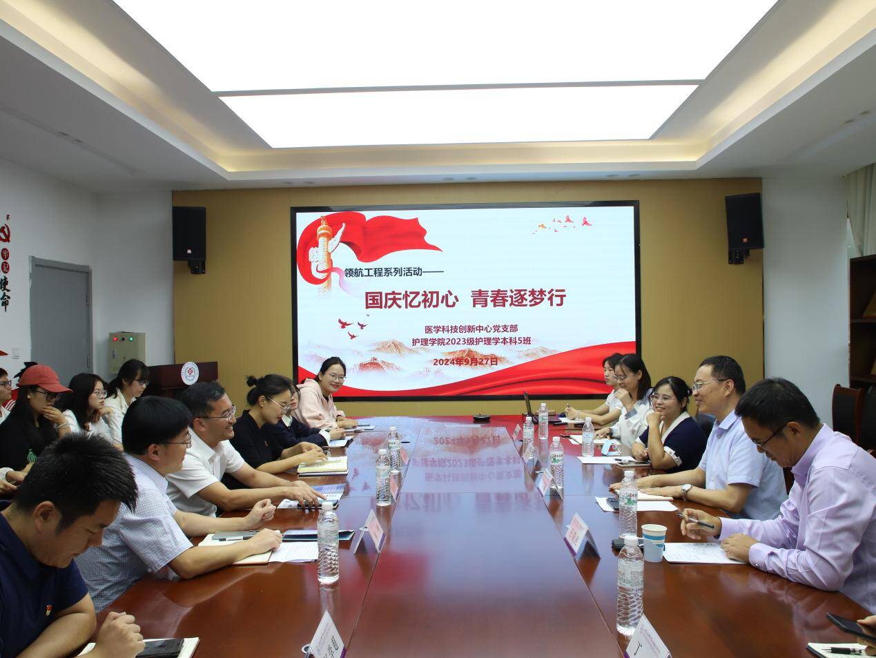 国庆华诞,党心璀璨。为积极落实校(院)党委关于深入开展“领航工程”工作要求,充分发挥基层党组织战斗堡垒和共产党员先锋模范作用,9月27日,医学科技创新中心党支部与beat365在线唯一官网2023级护理学本科5班共同开展“国庆忆初心,青春逐梦行”主题领航活动。 会上,医学科技创新中心副主任于广福、大型仪器平台负责人陈宁分别介绍了科创中心建设、大型仪器平台的基本情况。联系班级辅导员张恒丽介绍了班级组织思想情况。支部党员...