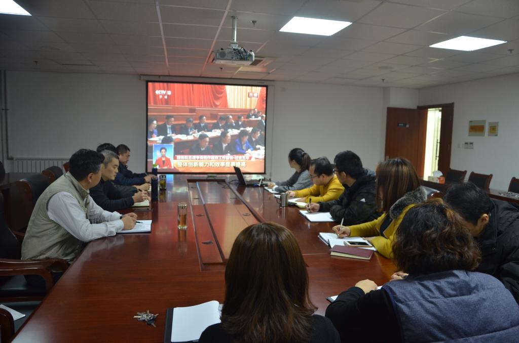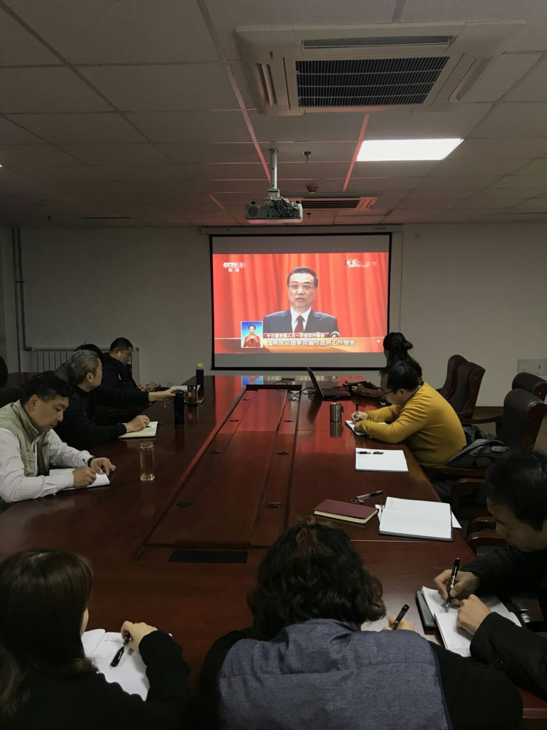 2018年3月5日,在国家大学科技园五楼会议室,国家大学科技园党支部组织公司全体职工远程通过网络,观看现场直播十三届全国人大一次会议在人民大会堂开幕,全体职工认真聆听了李克强总理所作的政府工作报告。