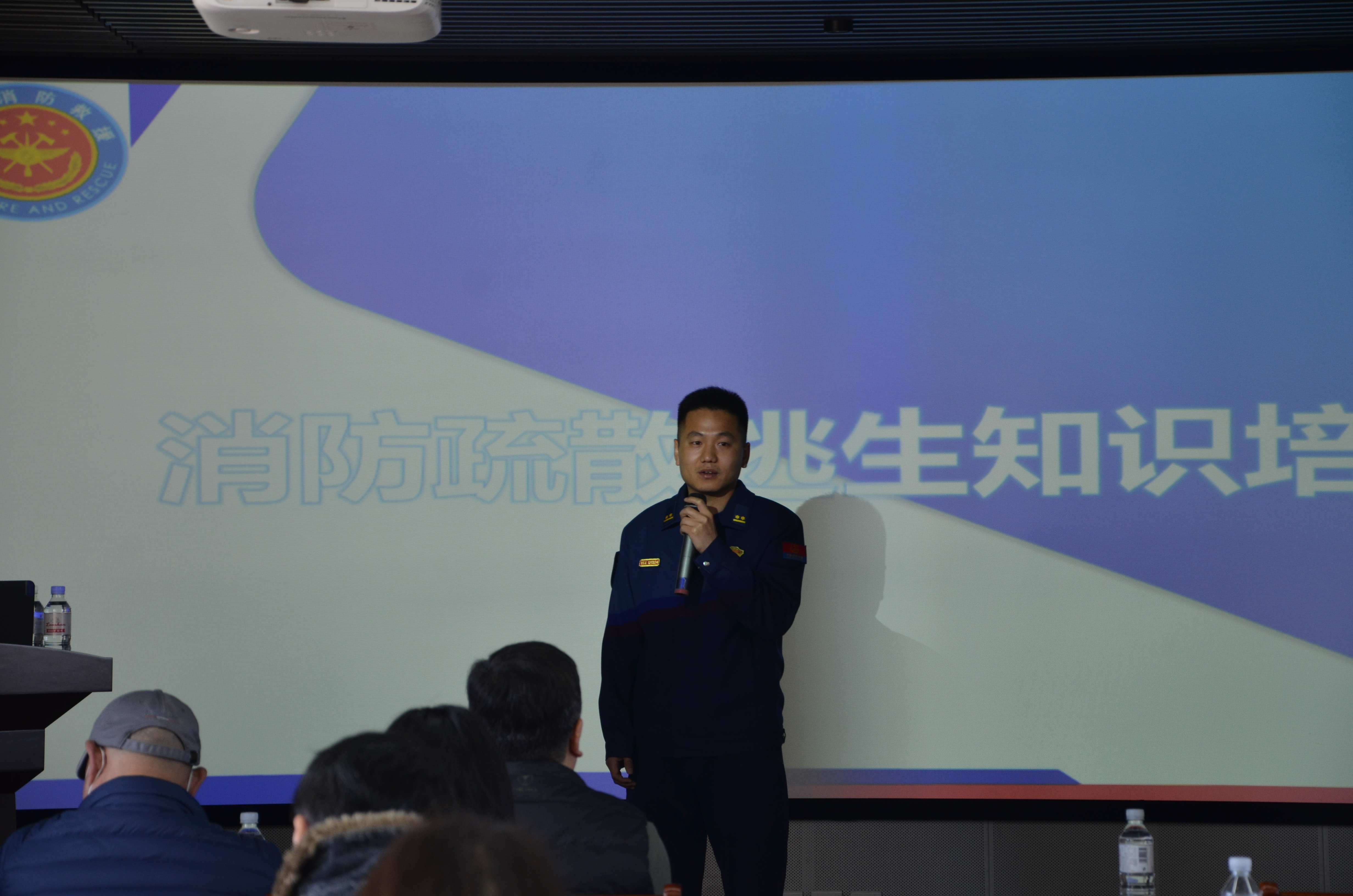 培训会上,市北消防救援大队水清沟站站站长侯帅为大家做了《消防疏散逃生知识培训》主题宣讲。侯站长结合有关消防安全事故案例分析,围绕消防安全基本知识、常见消防隐患和违法行为、灭火与疏散逃生常识等进行了详细生动的讲解,向大家普及了消防安全知识。