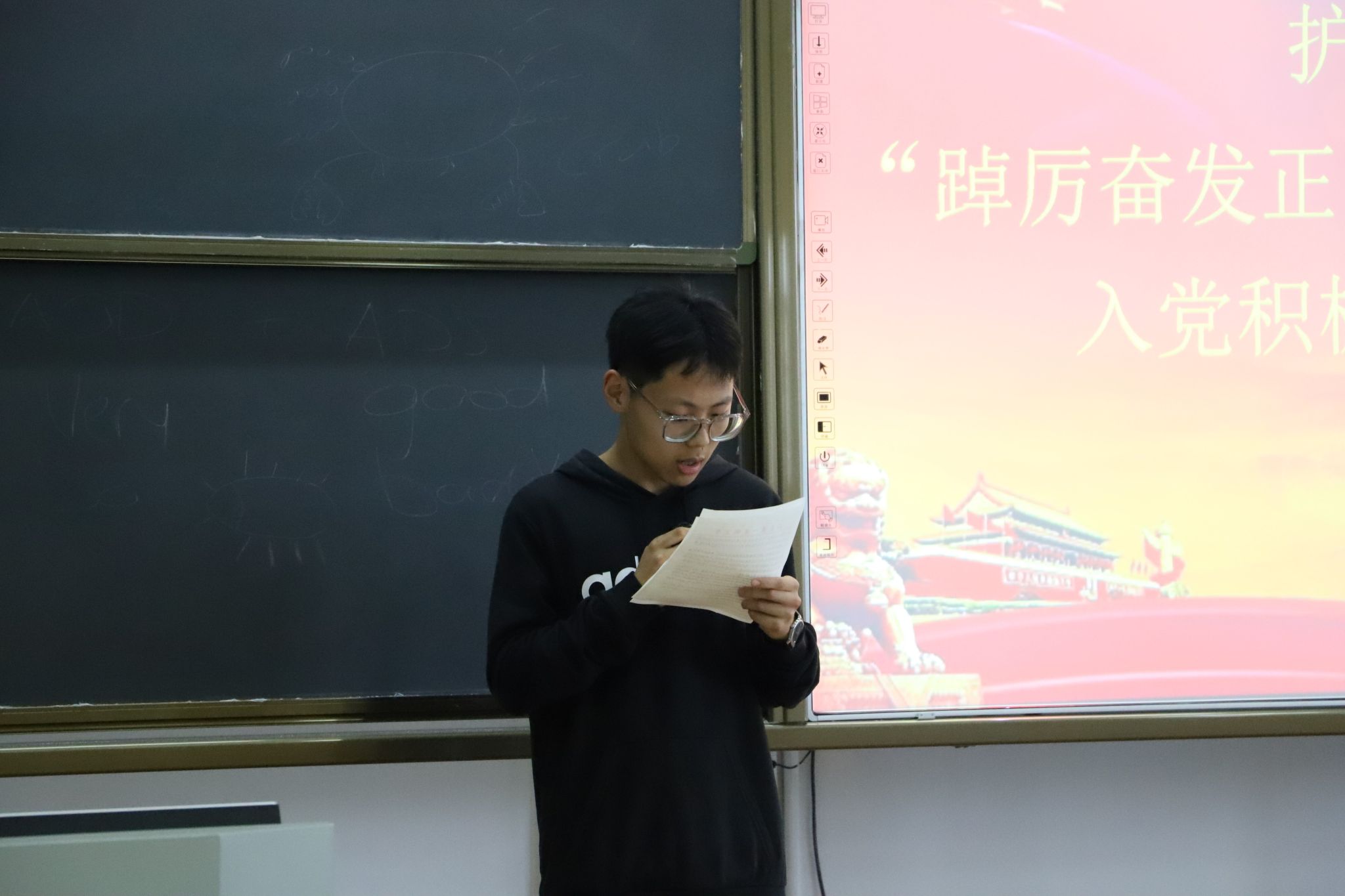 活动中,2021级学生党员代表景北通过分享自己的成长经历,鼓励大家以党员的标准严格要求自己,脚踏实地、锐意进取,努力做德智体美劳全面发展的标兵和模范。2023级赵智雄作为入党积极分子代表发言,表示要珍惜这次宝贵的学习机会,加强思想政治理论学习,不断提升自己的综合素质,争取早日加入党组织。
