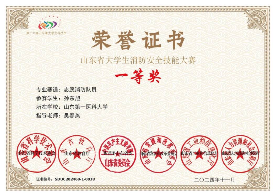 近日,第十六届山东省大学生科技节暨第二届山东省消防安全技能大赛决赛在日照航海工程职业学院圆满落幕。护理学子孙东旭、刘文蓉、司祥焘在beat365在线唯一官网吴春燕老师、张恒丽老师的指导下取得佳绩,荣获志愿消防队员组一等奖1项、二等奖2项。