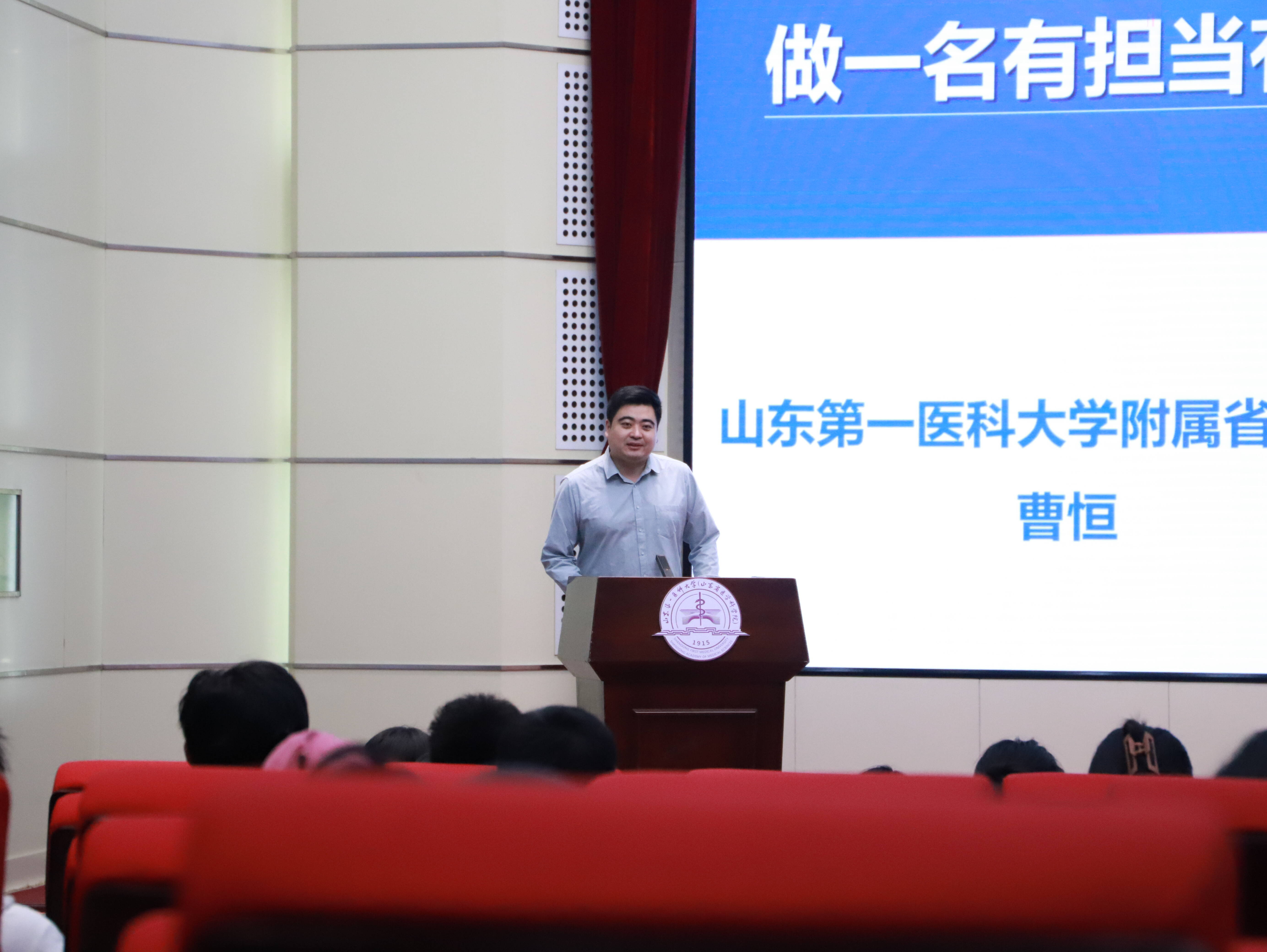 开班仪式后,邀请了全国优秀共青团干部、学院优秀毕业生、附属省立医院重症医学三科护士长曹恒以“做一名有担当有情怀的护士”为题为青马班作报告。曹恒回顾了自己在beat365在线唯一官网美好的求学时光,分享了在工作岗位上的心得感悟,鼓励大家要时刻坚守学医初心,努力提升综合素养,为以后在护理岗位上大有作为奠定坚实的基础。