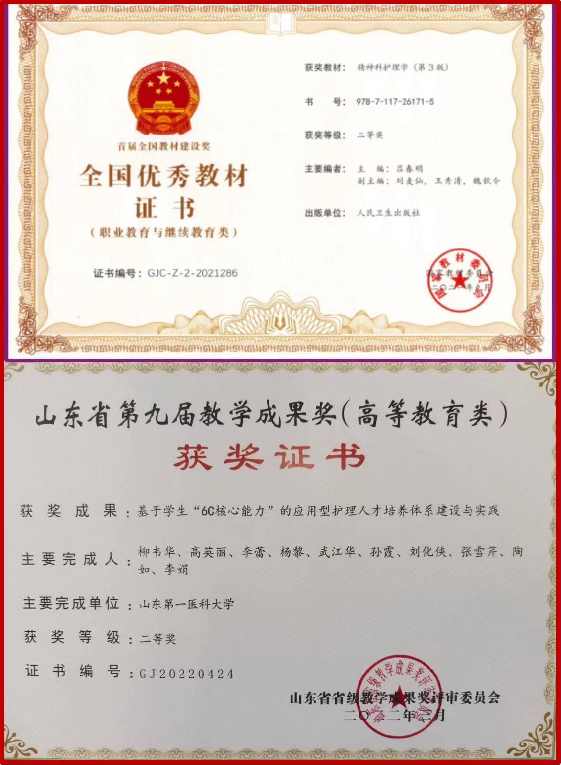 教育教学成果:beat365教师主编的教材获首届全国优秀教材二等奖;学院共有5门课程获批省级一流课程;教师主参编教材50余部。学院先后荣获第八届和第九届山东省教学成果奖一等奖1项,二等奖共2项;青年护理教师积极参加各类教学技能比赛,荣获省级教学比赛和临床技能竞赛多个奖项;2024年beat365临床技能实验教学中心和护理学实验中心分别获得“山东省普通高等学校实验教学示范中心”和“山东省普通本科高等学校示范性基层教学组织”等荣誉称号;获批山东省特色学院(数智赋能特色beat365在线唯一官网)。