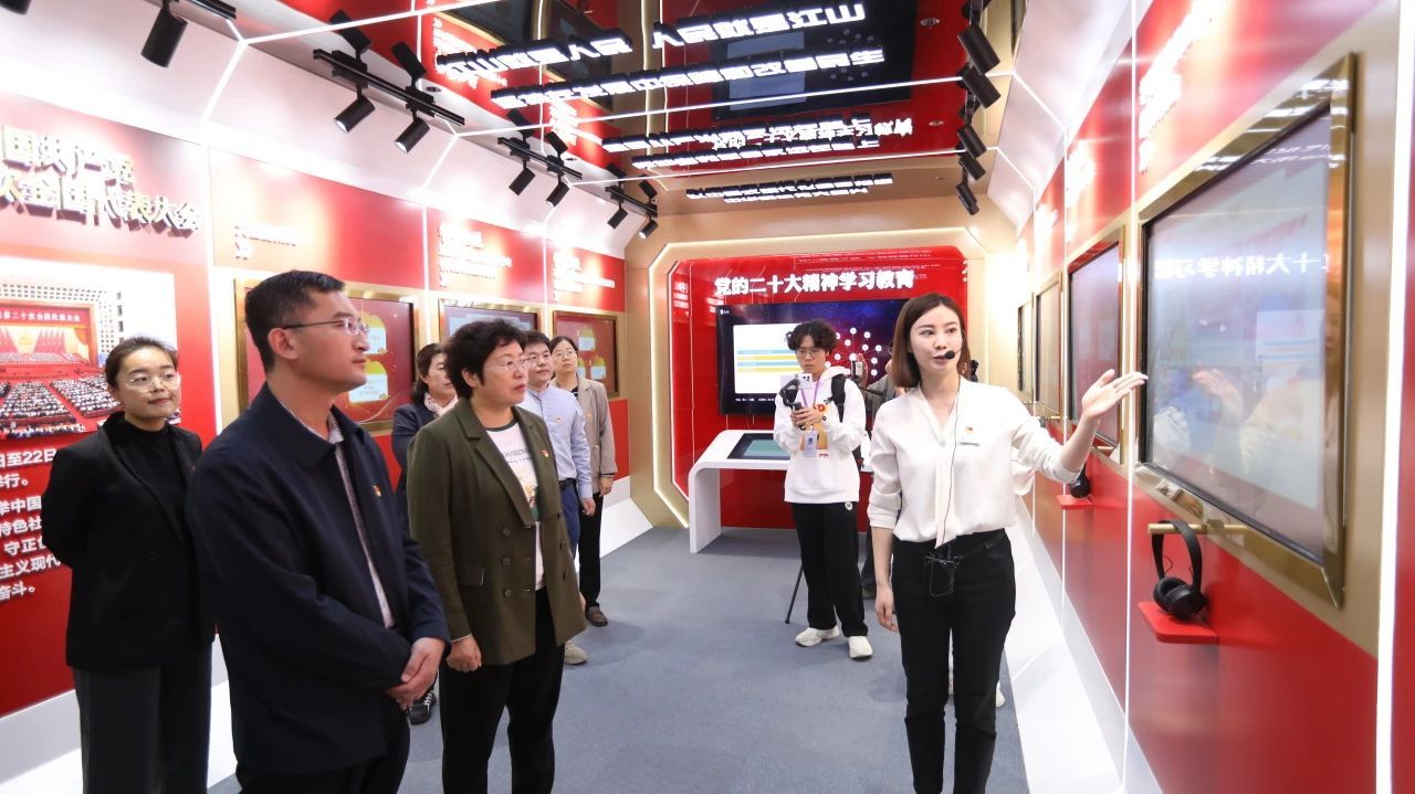 在“党的二十大精神学习教育厅”,通过人民网智慧党建内容服务云平台和电子触摸屏,大家体验了沉浸式、互动式的学习。