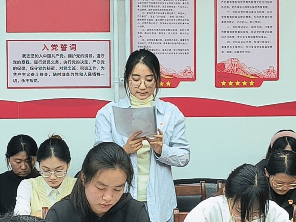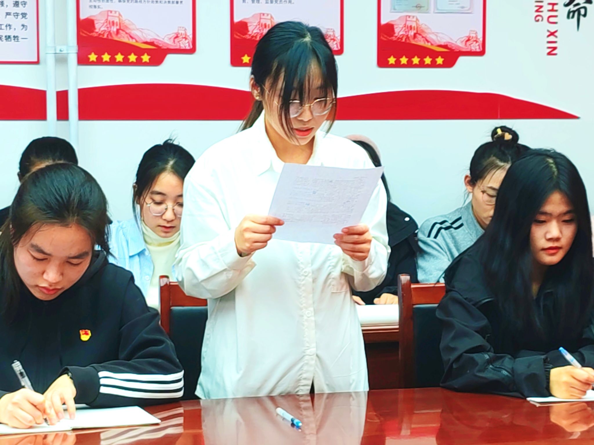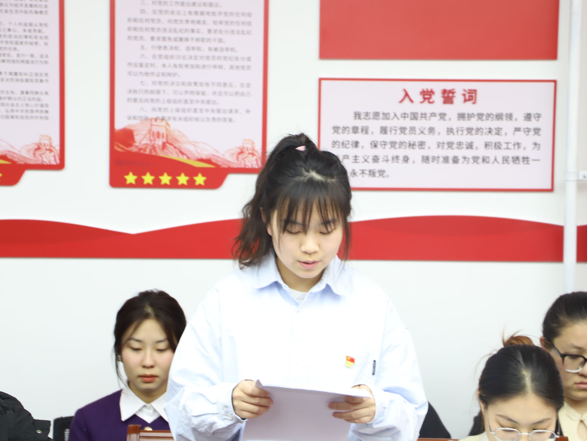 刘佳淼、周赟筱、高凡、景北等四名学生党员代表依次发言。她们谈到,在学院党委和老师、同学们的关心帮助下,经过个人努力,入党一年来,在思想、学习、工作、生活等各方面都有了更大的提高和进步,一致表示在接下来的日子里将更加身体力行肩负起应有责任,履行好应尽义务,永葆共产党员的初心本色。