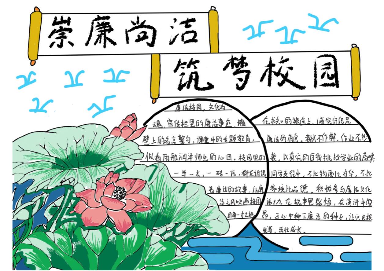 活动中,学生党员们紧扣清廉学校建设的主题,通过手抄报、征文等形式,结合自身的学习、工作和生活经历,以真挚的情感和深刻的笔触阐述了对清廉学校建设的理解与感悟。学生作品内容多样,既有对廉洁奉公高尚品德的颂扬,也有对身边廉洁事迹的生动叙述,更有对如何在校园中践行廉洁理念的深入思考。