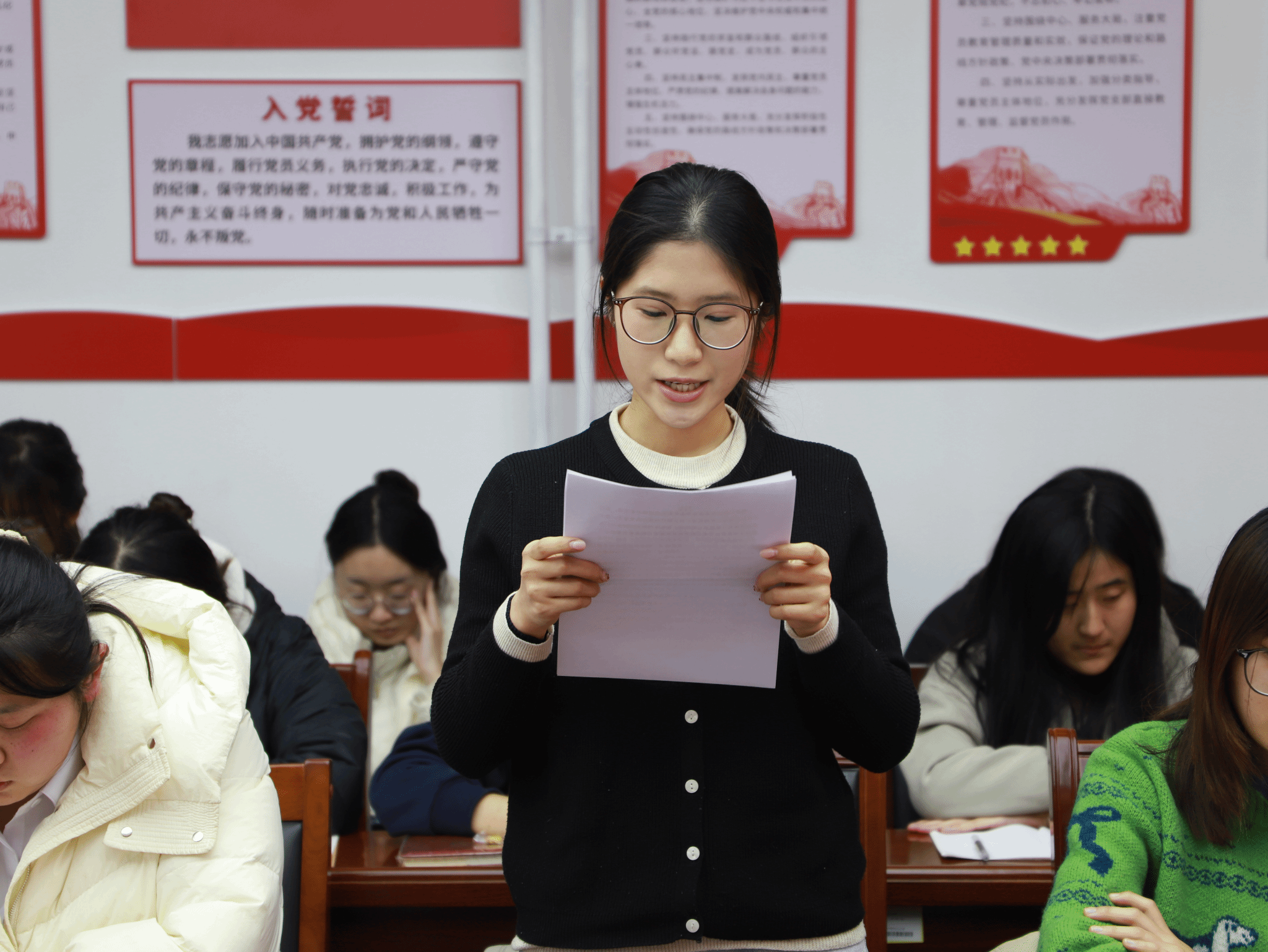 三名预备党员代表分享了各自对党的认识和感悟,表示将时刻牢记共产党员的初心和使命,在学习与工作中充分发挥先锋模范作用,以实际行动践行对党的誓言。