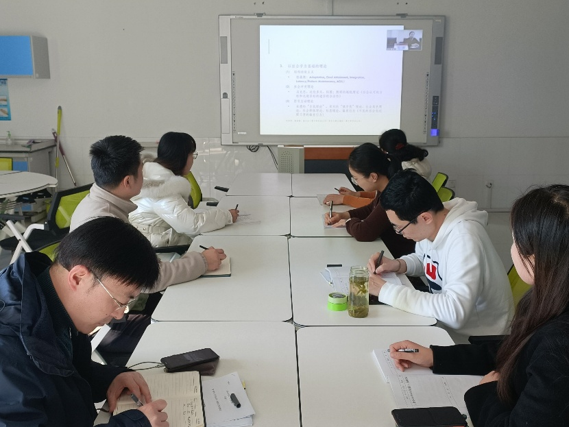 在资助政策解读和理论学习研讨环节,学院全体辅导员在综合实验楼B237室进行了线上集体培训学习,集体观看北京大学社会学系副教授高翔老师主讲的题为“青少年社会工作的干预模式”线上直播讲座。随后,全体辅导员老师结合学院受助学生群体的实际情况,就有关家庭经济困难青少年社会工作重点政策解读和案例示范进行了深入地讨论和交流。