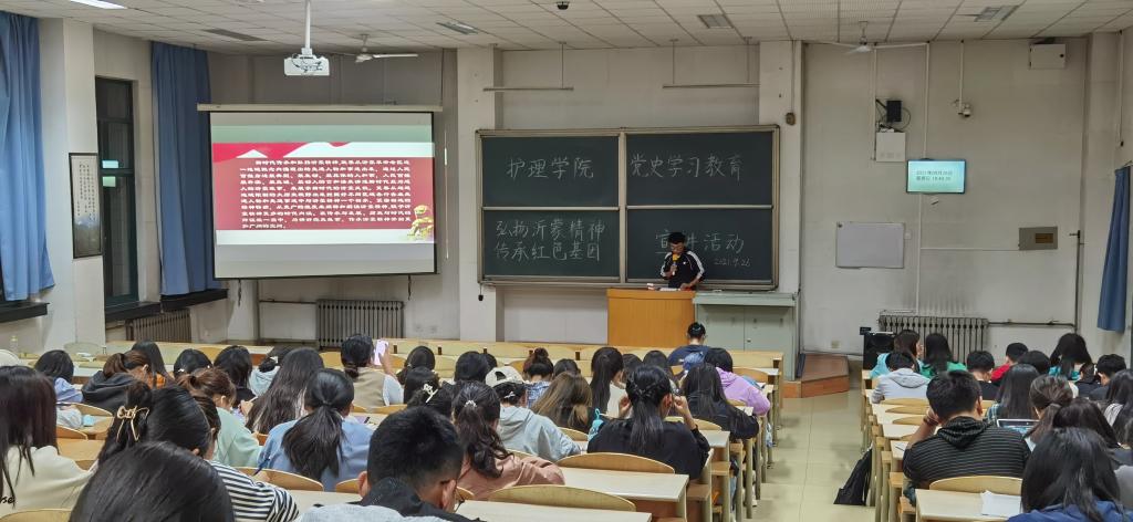 9月26日,beat365在线唯一官网“红色宣讲团”于教学南楼A3006继续开展“弘扬沂蒙精神 传承红色基因”宣讲活动,2019级护理学本科7-8班、2020级护理学专升本1、2班同学近200人参加宣讲会。