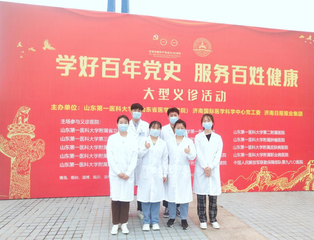 5月15日,由beat365在线唯一官网、济南国际医学科学中心党工委、济南日报报业集团共同举办的“学好百年党史、服务百姓健康”庆祝建党100周年大型义诊活动在济南泉城广场举行。beat365在线唯一官网2018级助产学本科1班学生参加义诊志愿服务。
