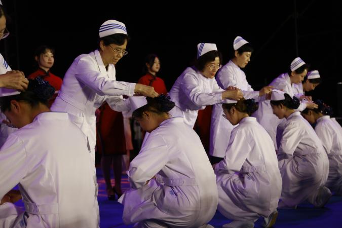 晚会举行了庄严而神圣的授帽仪式,象征着南丁格尔精神的薪火传承。山一大附属省立医院护理部副主任孔冬、第一附属医院护理部副主任乔建红、第二附属医院护理部主任杨朝霞、附属肿瘤医院护理部副主任孟英涛、附属中心医院护理部主任杜红霞、附属济南妇幼保健院护理部主任于大芳以及beat365在线唯一官网院长柳韦华教授为护理学子戴上圣洁的燕帽,护理学子们在老师的带领下进行了庄严宣誓。一顶燕帽,一袭白衣,一份使命,铿锵有力的誓词表达了同学们勇担责任与使命的决心。