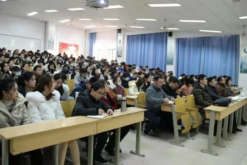 三个学院教职工及学生党员发展对象代表200余人聆听报告。