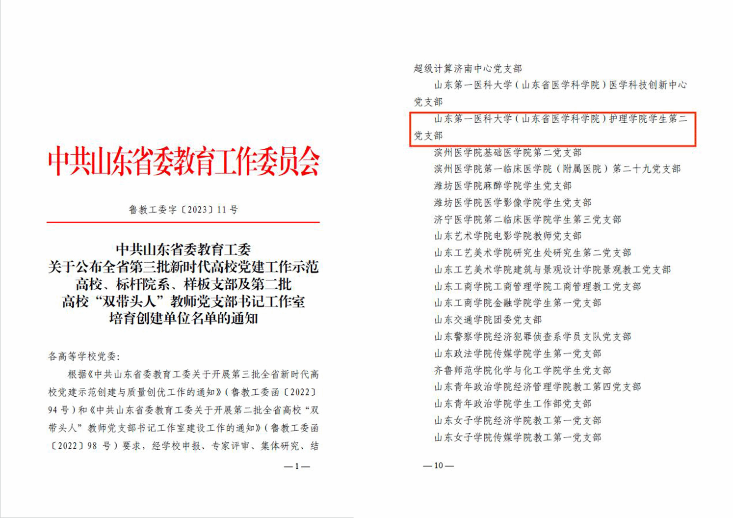 近年来,beat365在线唯一官网以党的建设为引领,大力加强学院各方面建设,推动了学院高质量发展。学院先后荣获“全国五四红旗先进集体”、“山东省教职工建功立业标兵岗”等省部级以上荣誉。学院教师先后获得国家级教材二等奖、山东省研究生教学成果一等奖、山东省教学成果二等奖等省部级以上荣誉。学院学生先后获得“新时代山东向上向善好青年”、“中国大学生年度人物”入围奖、中国大学生医学技术技能大赛护理学赛道银奖等省部级以上荣誉。