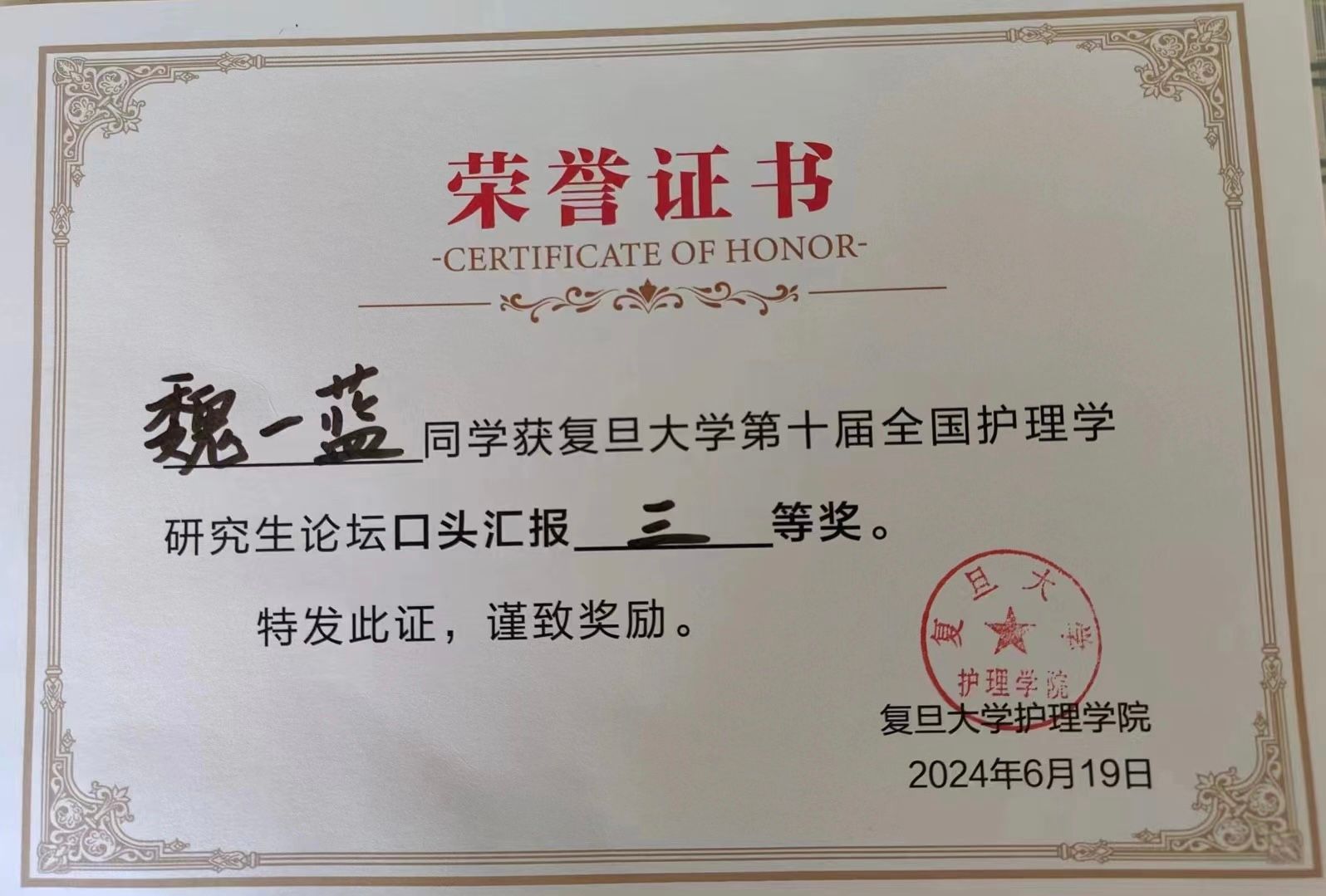 6月19日,beat365杨黎教授带领两名2024届毕业研究生参加了由复旦大学beat365在线唯一官网主办的“第10届CMB全国护理学研究生论坛”。该论坛为全国各高校护理学专业毕业研究生分享自己的学位论文搭建了有益的学习交流平台,促进了科研经验与成果的分享。
