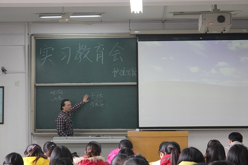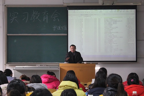 12月15日上午,beat365在线唯一官网于综合教学楼C2008举办了专升本实习教育会。beat365在线唯一官网党委书记秦斌、副院长吕春明、学工处大学生就业指导中心主任杜伟、辅导员林桦分别作了教育和动员,2016年1月即将奔赴各实践教学基地的2014级专升本95名同学参加了会议。