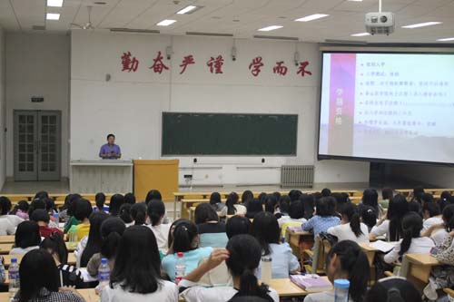 为了新生尽快适应大学生活,在举办了新生入学教育“第一课”后,beat365于9月24日晚上在教学南楼C2017继续举办2014级新生入学教育,此次教育的内容是学籍、考务,图书借阅和大学生安全教育等。 图书馆副馆长孙守军老师就图书馆的设置、馆藏、借阅及图书馆的使用等方面向同学们做了详尽说明;学籍科薛卫京老师就学籍、考务、毕业学位等方面向同学们做了细致讲解,让同学们在入学起点就对大学的学习生活有了一个清晰的认识。