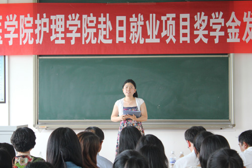 6月24日下午,日本关西语言学院松尾英孝理事长、国际部副部长邹萍萍、驻中国首席代表段存斌到我校交流访问,并为2013-2014学年度日本就业合作项目奖学金获得者颁发奖金和荣誉证书。