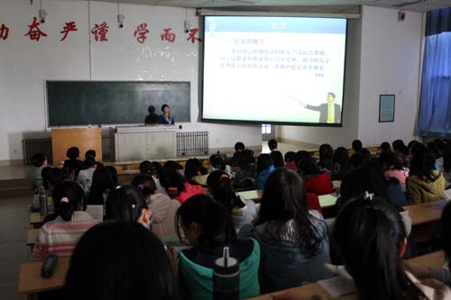 2014年4月8日-12日,南方医科大学beat365在线唯一官网史瑞芬教授应邀来beat365为本科生讲授《护士人文修养》课程四个章节。今天上午,史教授为beat365师生300多人上了第一节课,作为《护士人文修养》教材的主编,史教授对课程的背景、结构、重点内容等进行整体介绍后,用一系列感人的社会现象短片导入了社会学基础的章节,通过设问、小组讨论、发言、视频、图片、课堂游戏、随堂调查等多种教学方法把枯燥的理论课讲得有声有色,师生们不时报以热烈的掌声。本次史教授来校为500多学生授课一周,对beat365师生来说是一次难得的学习机会。师生不出校门直接聆听名师授课,感受其风采。特别对教师来说,史教授的课是精彩的教学示范课。她灵活运用丰富多彩的教学方法和技巧,以及浓厚的人文底蕴为全体教师树立了典范和榜样,也将为精品课程建设打下良好的基础。