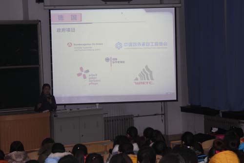 孙经理首先比较了护理专业国内、国外就业的差别,并以自身赴沙特七年的工作经历为榜样,鼓励同学走出国门,改变自己的人生轨迹,然后向学生重点介绍了赴德国就业的具体情况。第二天上午,有意向参加该项目的同学就自己关心的问题,向两位老师作了进一步的了解。