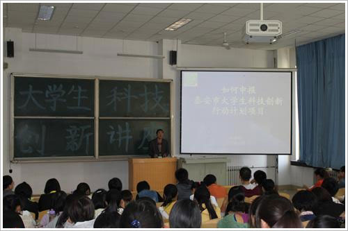 二、实行以年级为单位分层进行科技创新的体制。根据科技创新项目的不同特点,泰安市大学生科技创新项目侧重创新性,学校学生科研计划课题侧重专业性,安排大一、大二低年级学生重点申报泰安市大学生科技创新,大三学生具备了一定专业基础,重点申报学校学生科研计划课题。
