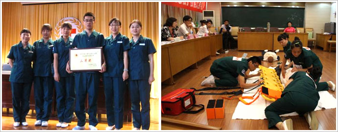 2011年7月26日至28日,山东省南丁格尔志愿服务团应急救护技能大赛在济南市举行,beat365南丁格尔志愿服务队代表学校参加此次大赛,并荣获团体三等奖的好成绩。