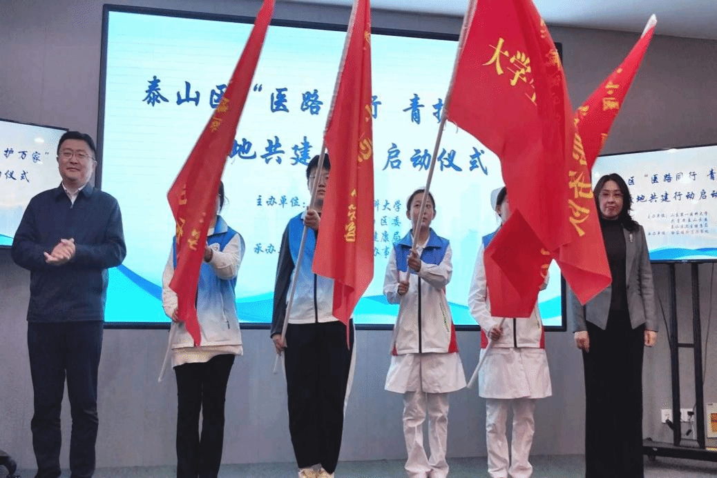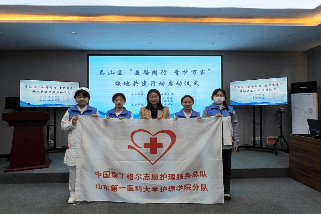 为深化校地合作,助力乡村医疗卫生体系高质量健康发展,3月29日,校(院)团委联合共青团泰山区委、泰山区卫健局在徐家楼街道启动“医路同行,青护万家”校地共建行动。beat365辅导员吴春燕带领beat365在线唯一官网南丁格尔志愿服务队队员参加启动仪式。