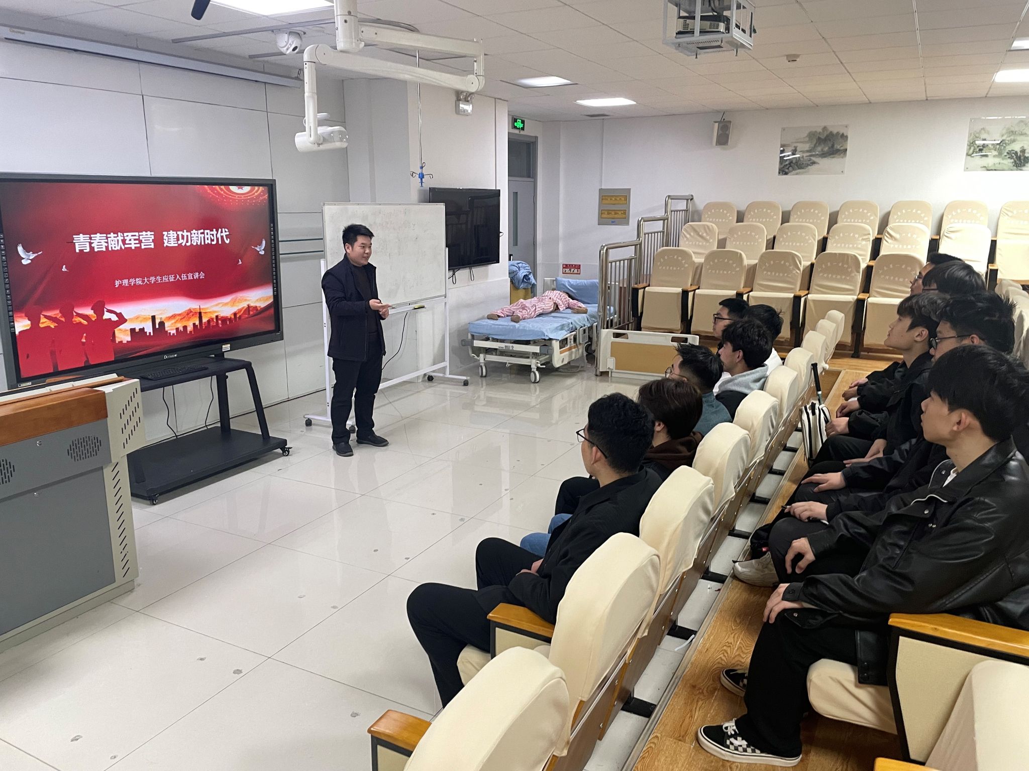 为增强大学生的国防意识,鼓励更多优秀护理学子投身国防建设,3月份,beat365在线唯一官网面向大三、大四男生举办了两次征兵宣传活动。学院组织员赵学超主持活动。