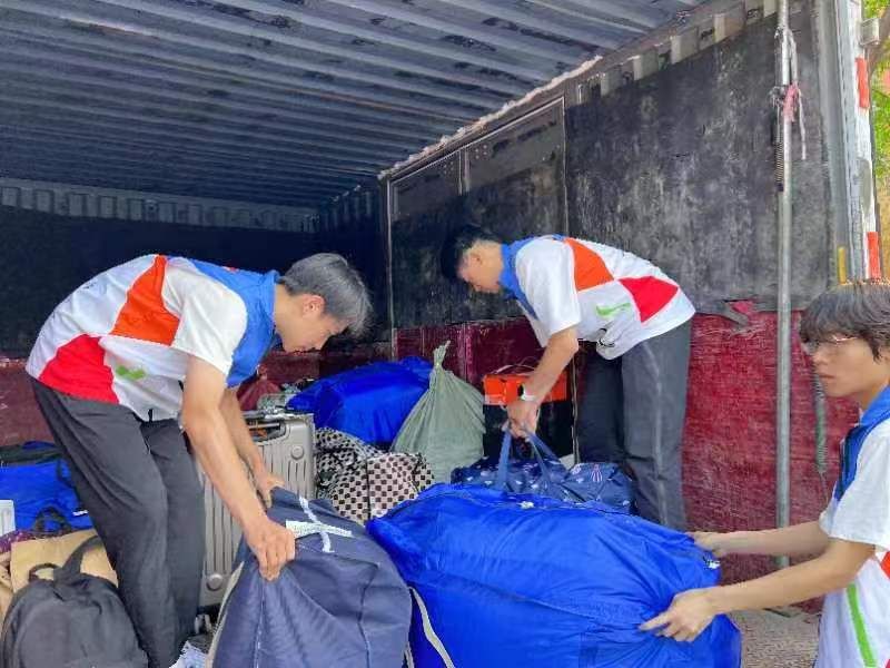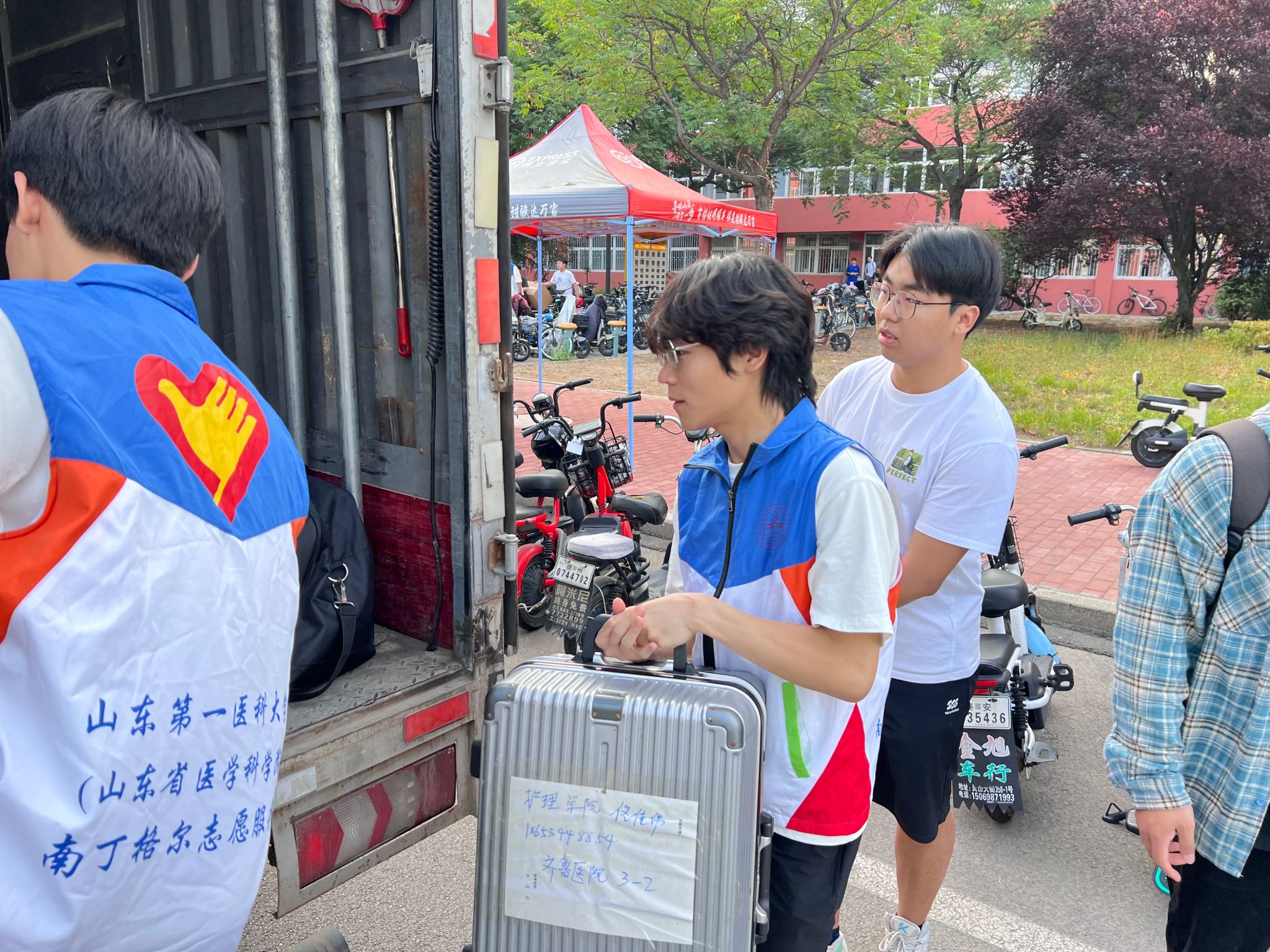 在这里,21级的同学们将大学校园生活暂时存档,挥别过去,迎接实习生活的新篇章。而志愿者们则像一群勤劳的蜜蜂,进进出出,不辞辛劳地忙碌着。他们接过手中的行李,犹如接过了一份“新的传承”。这不仅仅是简单的送别,其中有不舍、有祝福,更意味着传递“最美护理”之薪火,续写护理学子芳华新篇章。