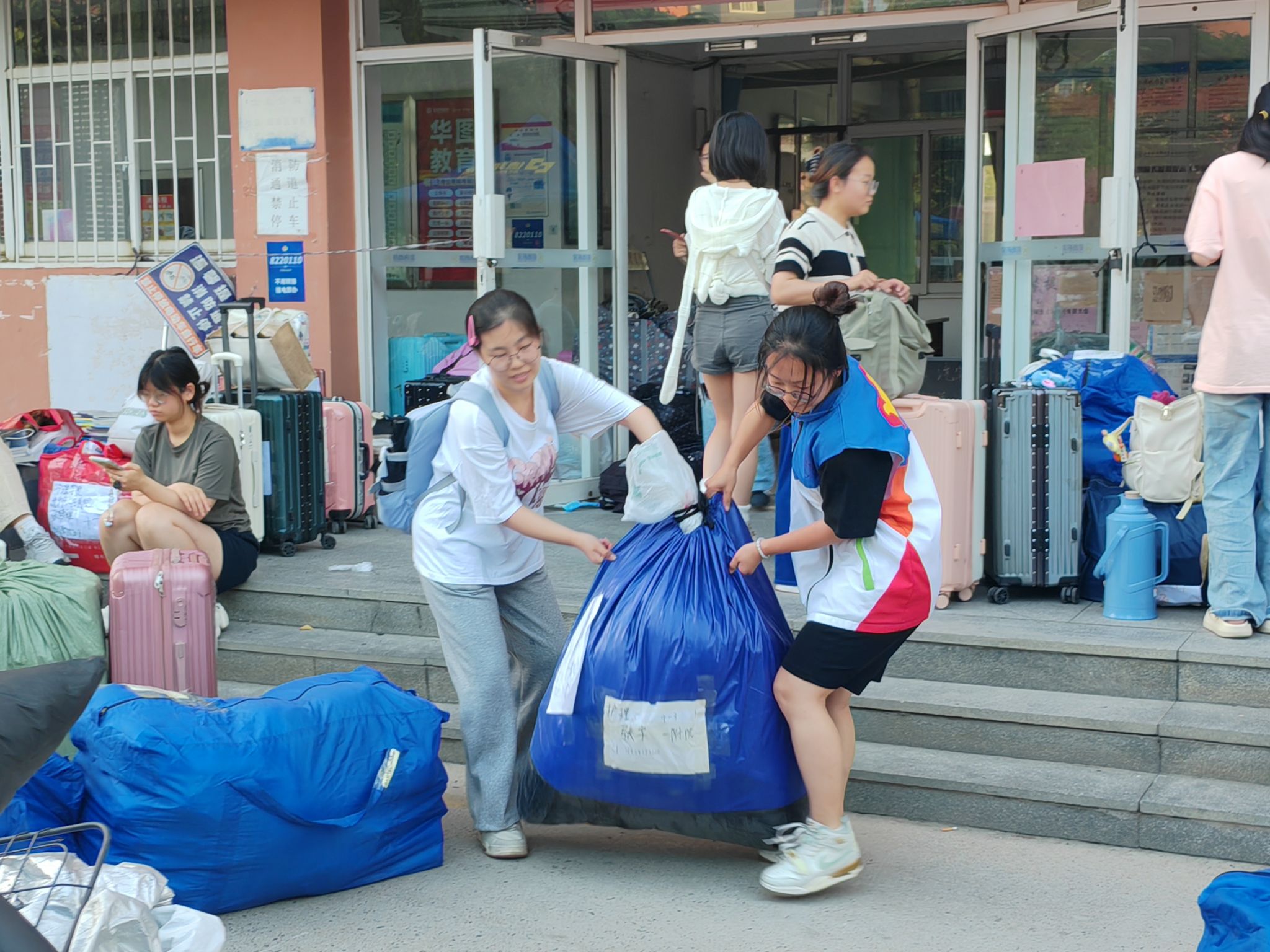 22、23级志愿者们早上5:30就已集合在宿舍楼前,开始了一早的忙碌,他们脸上洋溢着热情的笑容,仿佛春日里的暖阳一般,温暖着每一位同学。每一次的主动上前,志愿者们接过21级学长、学姐们手中沉甸甸的行李,用实际行动送上自己的美好祝福,诠释着“护理一家亲”的美好内涵。