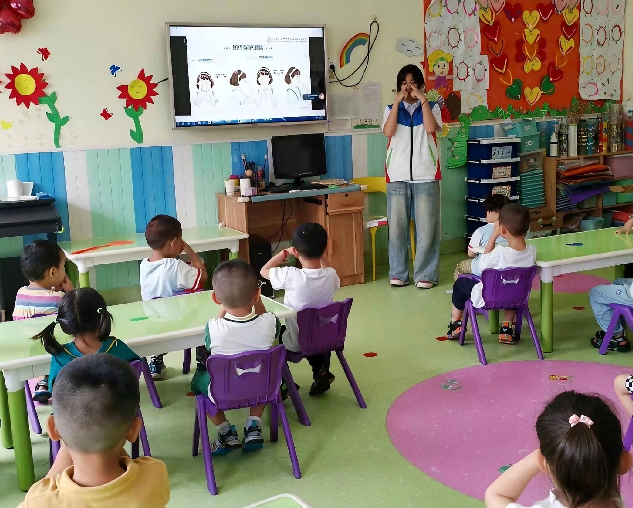 除宣讲和抢答环节外,大家还为小朋友们准备了彩笔和画纸,鼓励孩子们尽情发挥创意,用画笔来表达自己的心声。小朋友们在纸上画出一双双明亮的眼睛,或是描绘出五彩斑斓的自然风光,每一幅作品都充满了童真与想象。最后,活动在孩子们的欢声笑语中落下帷幕。