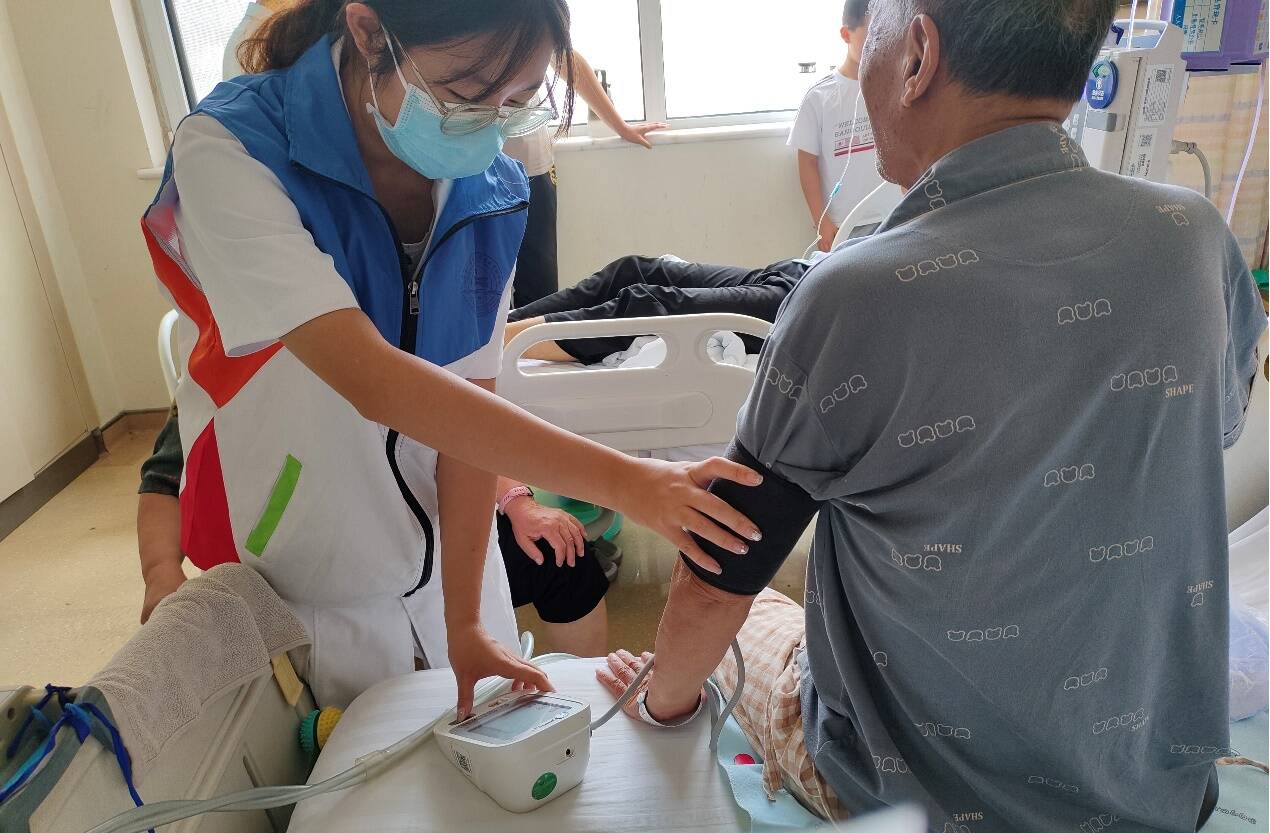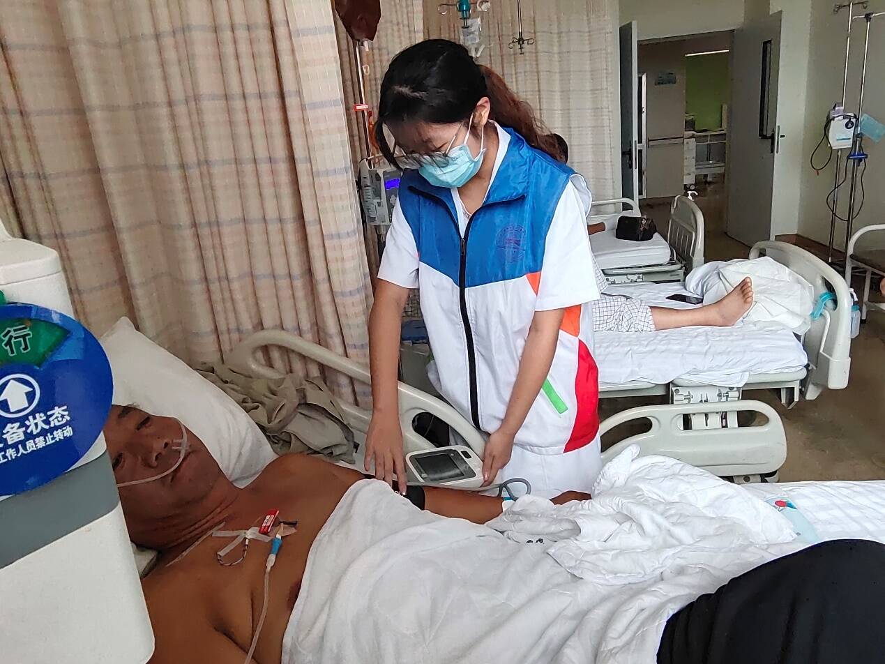 活动之初,为确保服务的专业性与高效性,队员们在山东省肿瘤医院外事部主任崔永春的安排下,于医院会议室接受了简易的专业培训,并进行了具体分工。随后,队员们分赴肝胆外科与骨软外科,深入各个病房,为老年患者提供血压、血糖、血氧饱和度检测等基础医疗服务。同时,队员们还与老人积极交流互动,建立情感联系,耐心细致地为他们分析病情、解答疑问和进行心理疏导,有效缓解了老年患者因疾病而产生的紧张、焦虑等不良情绪。队员们的专业素养与人文关怀赢得了老年患者及其家属的高度评价和由衷赞赏。