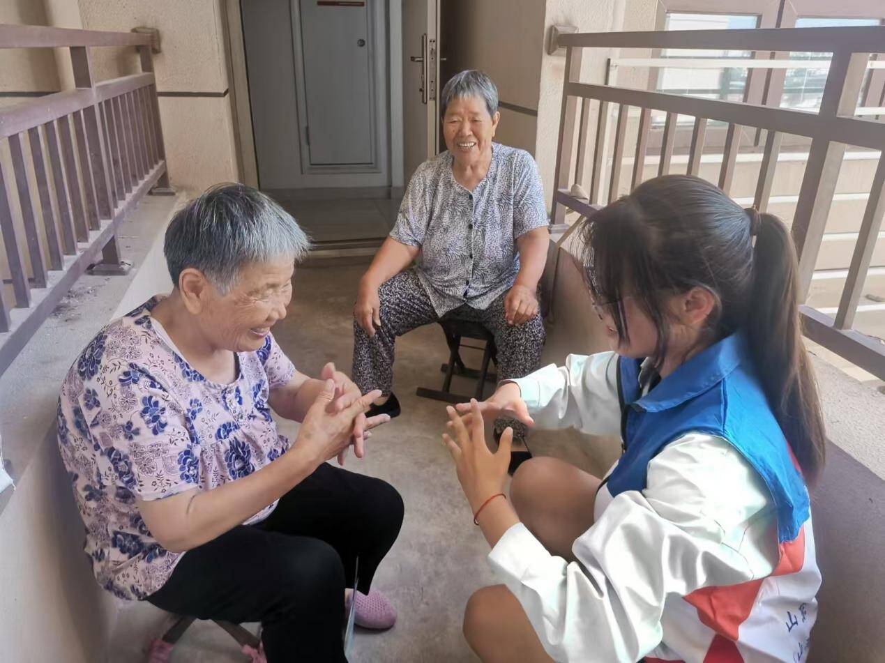 队员们走进滨城区黄河馨苑社区,为在阴凉处乘凉的老人提供专业的健康及饮食相关建议,随后队员们介绍并亲自演示了老年手指操的做法。科普结束后,队员们还为老人打扫了庭院,在队员们的共同努力下,老人们的居住环境有了很大改善,望着队员们认真的神情,老人们脸上浮现出了欣慰的笑容。