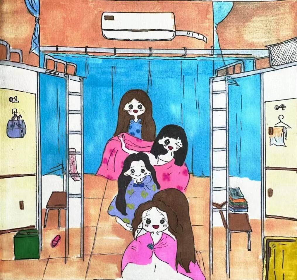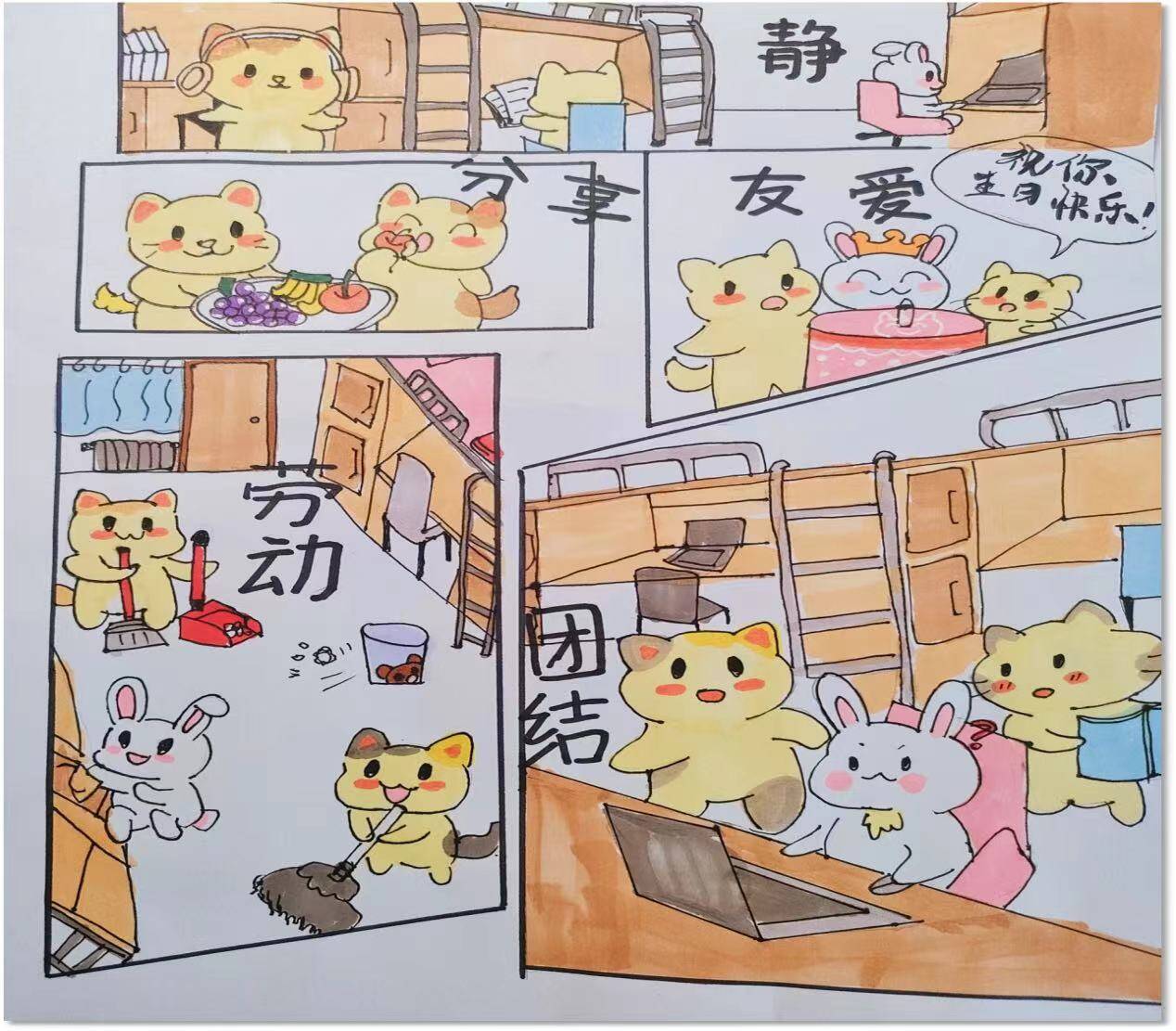 同学们用画笔描绘出了宿舍的温馨与友爱,勾勒出了大学生青春飞扬的美好画卷,下面我们一起来欣赏一下同学们的优秀作品吧!