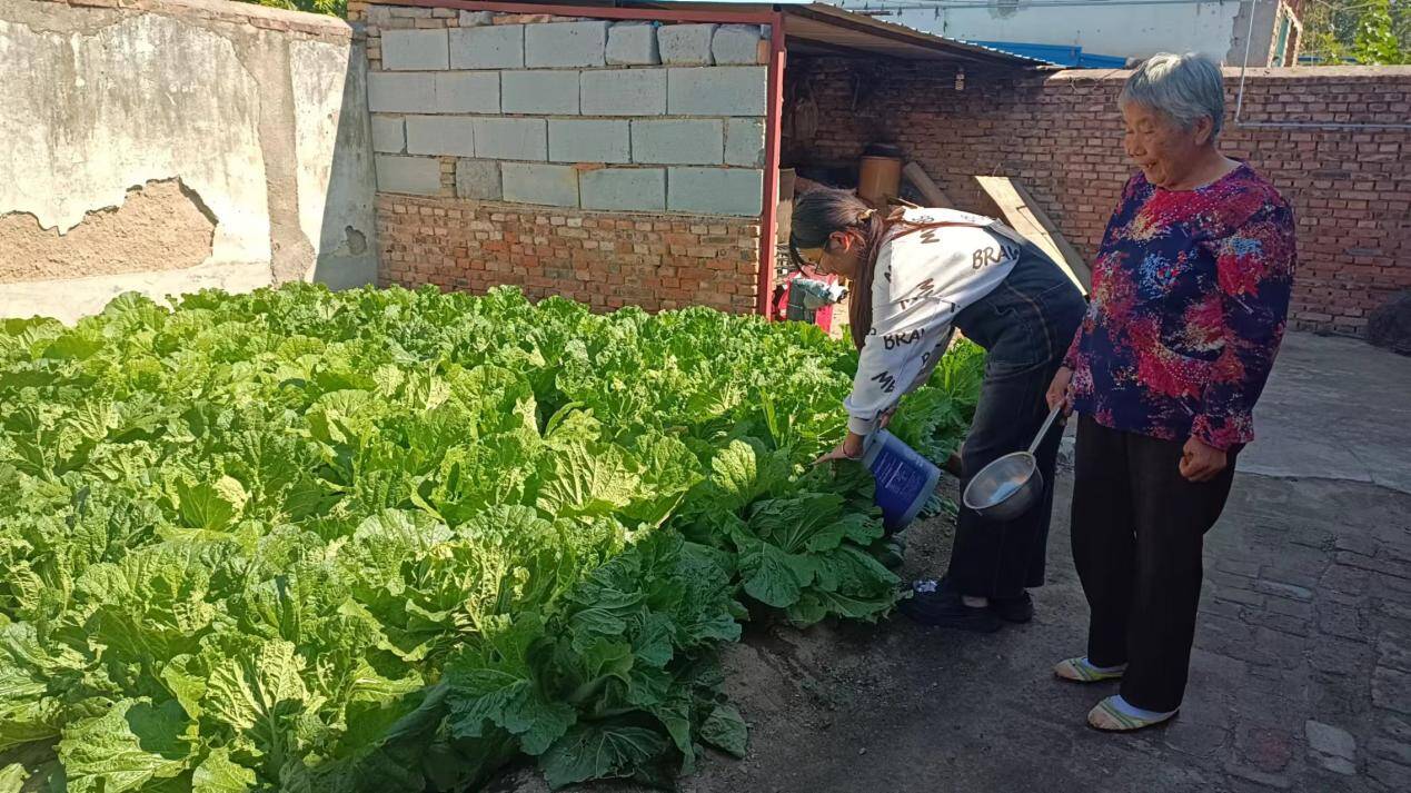 刘惠雯:国庆期间,我回到老家看望奶奶,帮忙浇灌她精心培育的菜地,奶奶耐心地教我如何判断蔬菜的需水量,怎样均匀地浇灌每一棵幼苗,并不时地讲述着这些蔬菜的种植故事和她的田园生活经验。在奶奶的细心指导下,我顺利地浇完了家中种的白菜地,不仅为奶奶分担了劳动压力,还让我明白了真正的孝敬并非浮于表面的形式主义,而是在日常琐碎中流淌出的细微关照与真心陪伴。