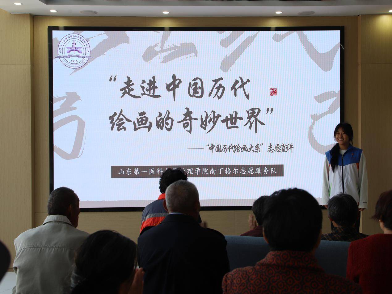 活动中,队员们介绍了中国历代绘画的发展历程、艺术特色和文化内涵等,从岩画到卷轴画,从山水画到人物画,队员与居民共同领略中国古代艺术魅力,感受历代画家创作风采。