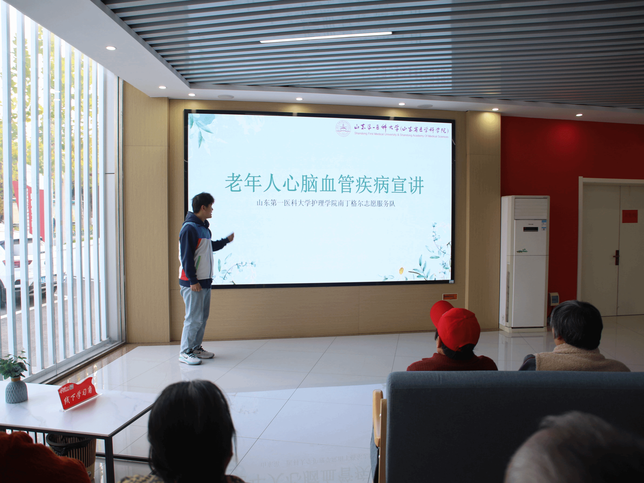 近日,beat365在线唯一官网南丁格尔志愿服务队走进泰安市凤凰社区开展“百万大学生进社区”社会实践活动,为老年人普及心脑血管疾病的防治知识。