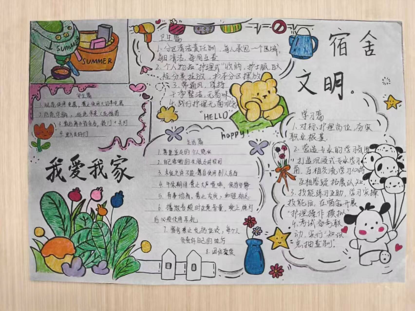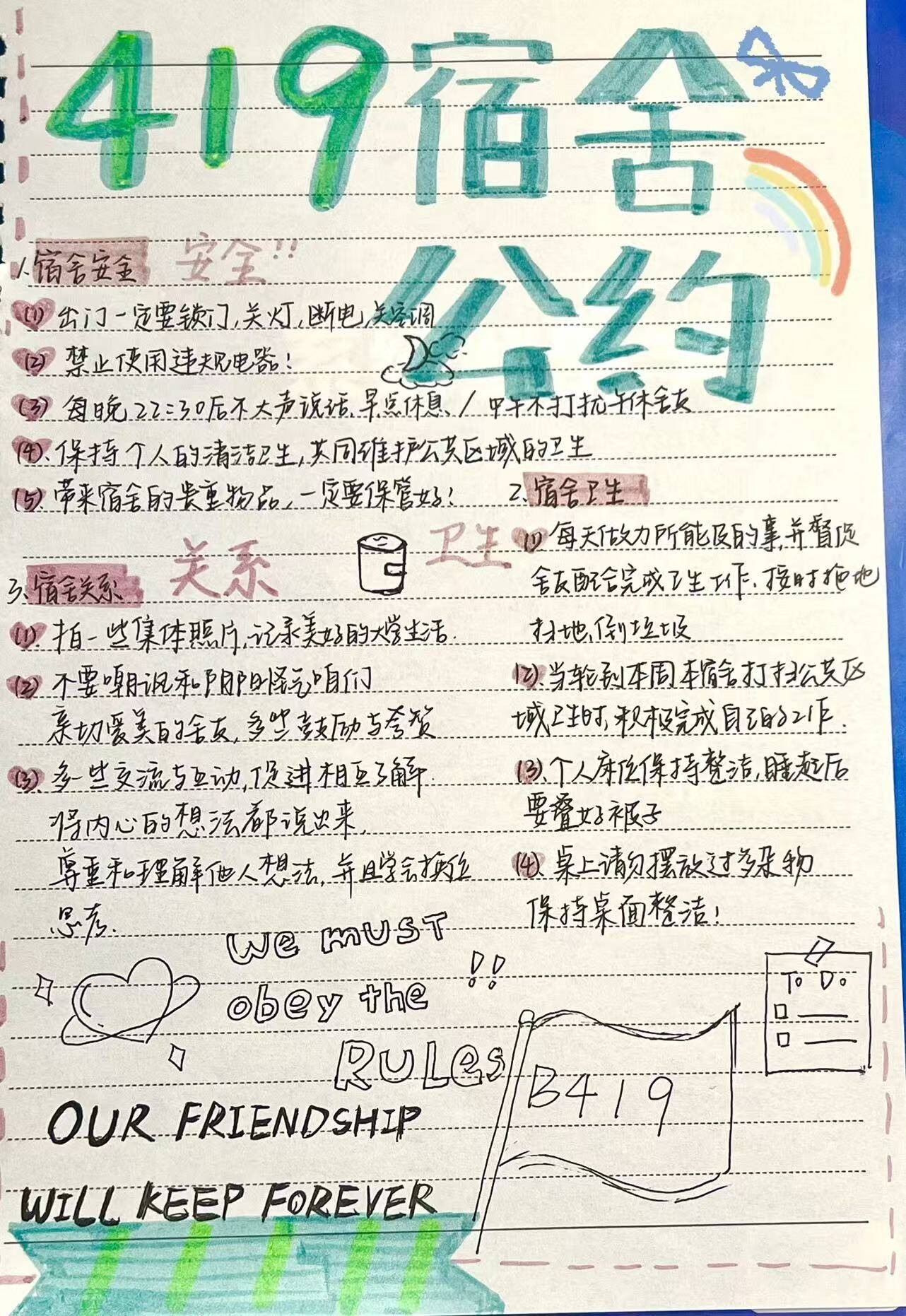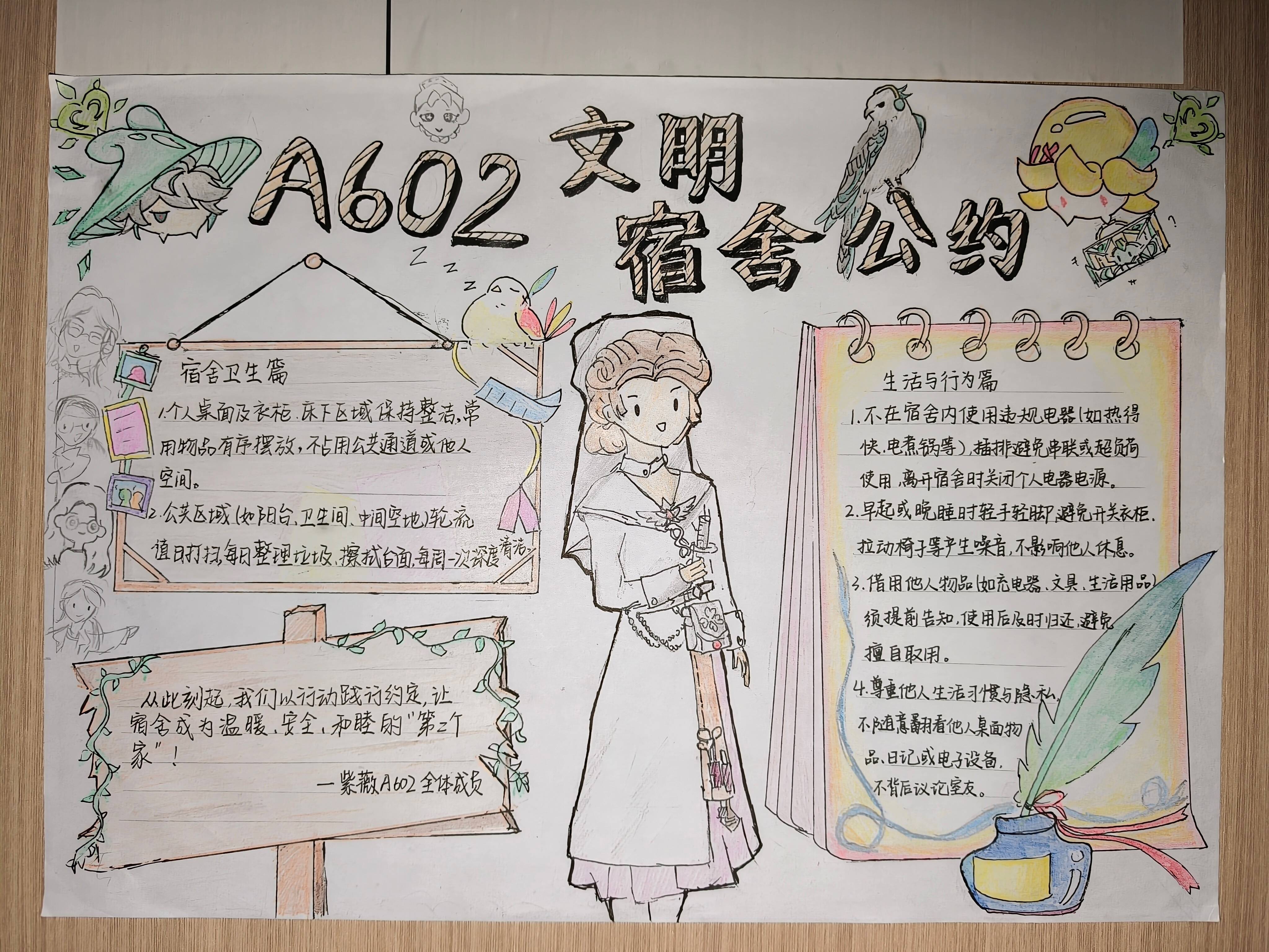 活动自启动以来,各班级同学积极响应、踊跃参与,围绕宿舍卫生管理、作息规范、人际关系、安全公约等核心内容,创作并提交了一批主题鲜明、内容实用、富有创意的宿舍文明公约作品,充分展现了护理学子良好的精神风貌与集体智慧。