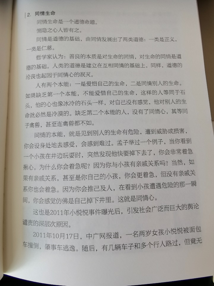 “同情的本能,就是见到别人的生命有危险,遭到威胁或损害,你会设身处地去感受,会感到难过。”出自《让人文照亮医学》,姚志彬著。