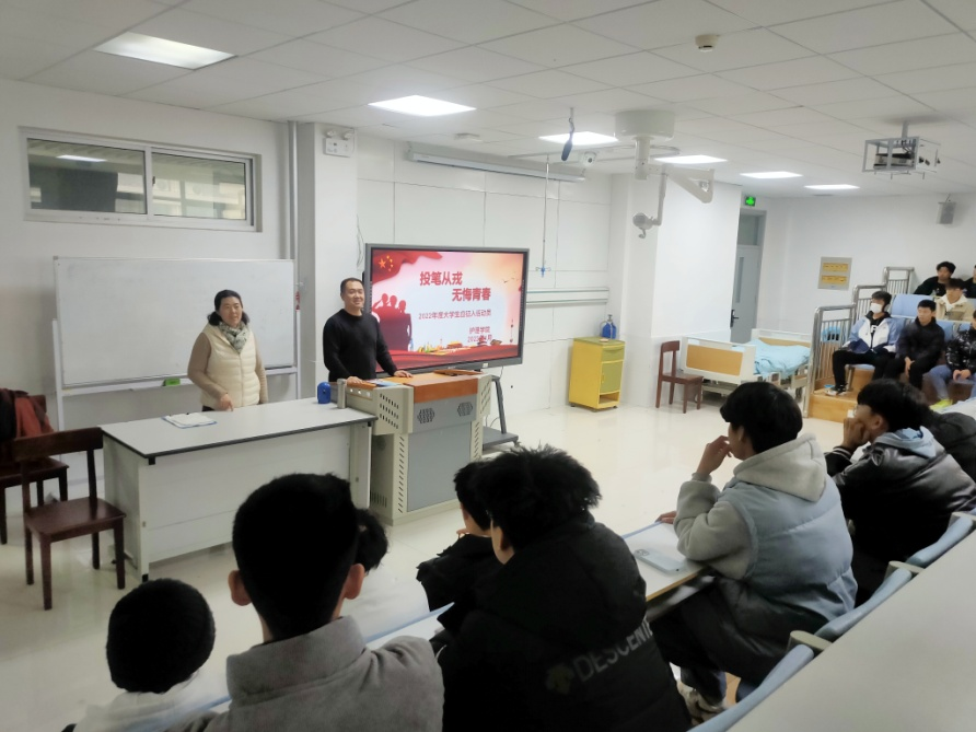 为进一步提高beat365在线唯一官网学子应征参军入伍的热情和积极性,推动学院2022年大学生应征入伍工作顺利开展, 1月7日,学院邀请校(院)武装部安文老师做征兵政策专题宣讲。宣讲会由学工办主任王有娟主持,辅导员赵学超、李新凤及在校生代表参加宣讲会。
