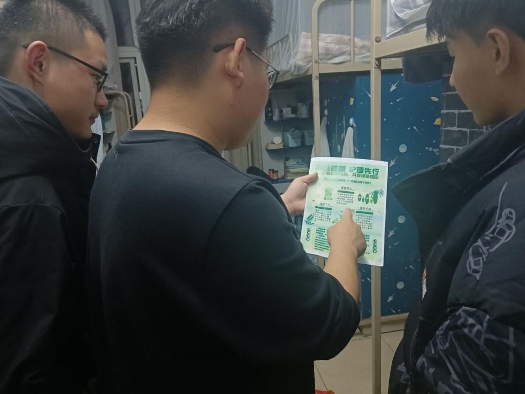 12月12日,青马班学员走进学生公寓楼,在宿舍宣传栏张贴绿色环保知识的宣传海报,同时,到宿舍宣传垃圾分类等环保知识要点。在宣传过程中,青马班学员耐心解答同学们关于垃圾分类的各种问题,引导广大同学为绿色文明校园建设贡献一份自己的力量。