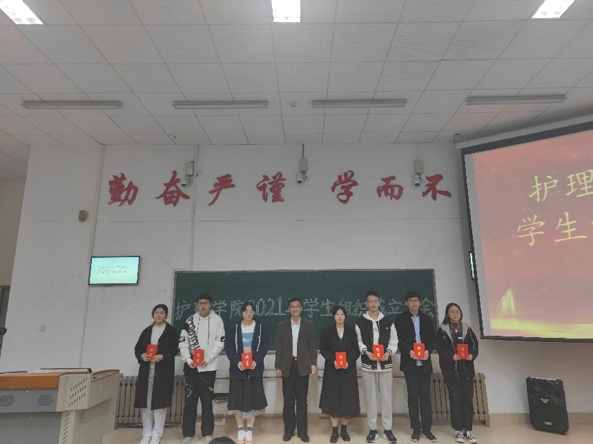 学工办主任王有娟、团总支副书记张恒丽分别宣读各学生组织成员名单和优秀学生干部、优秀志愿者名单。张延玲为学生干部代表颁发聘书,林桦为2020-2021学年“优秀学生会干部”、“优秀青年志愿者”获奖同学颁奖。