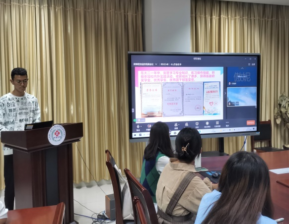 经过班级评议、资格审查,共21位同学参加这次答辩。答辩采用线上和线下结合的方式。每位答辩同学精心制作了PPT并围绕主题进行演讲,讲述自己大学以来在学习成绩、综合素质、比赛获奖、社会实践等方面的成长与收获,向大家展示了他们丰富多彩的大学生活。