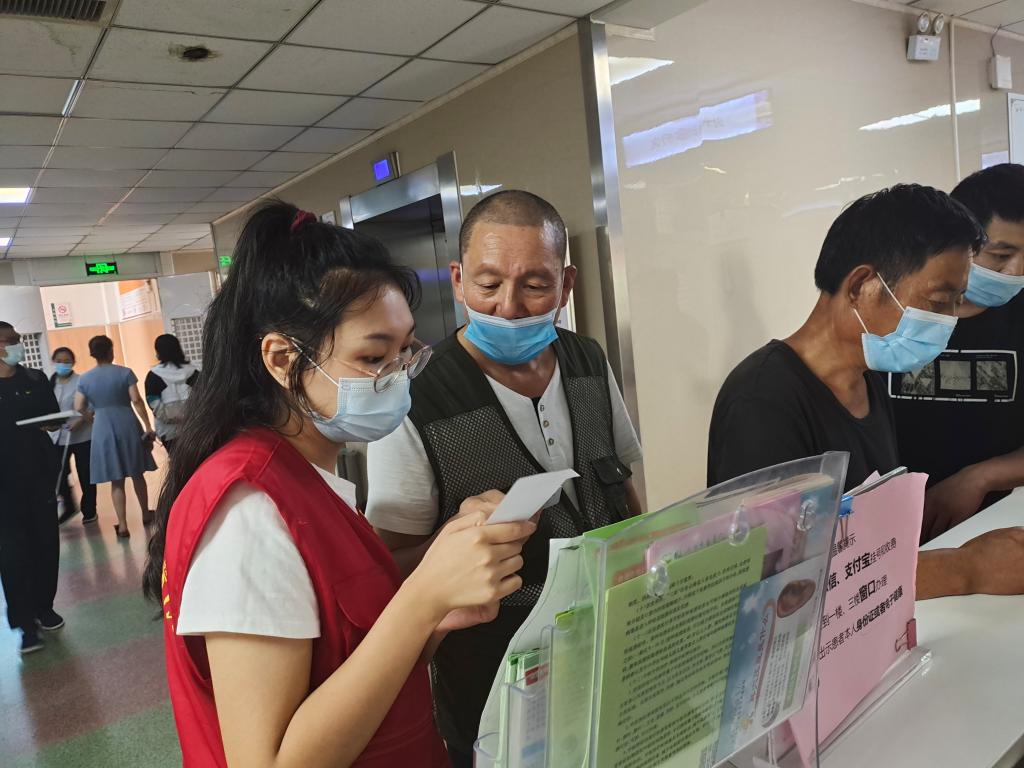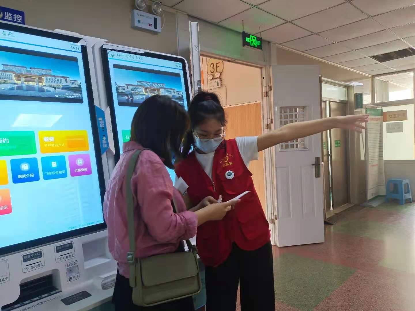 炎炎夏日,在临沂市中医医院的门诊楼中,张云同学作为身着红马甲的志愿者格外显眼。她熟练地穿梭在一台台崭新的自助就诊设备之间,帮助就诊患者完成挂号、缴费、查询等操作。在她的协助下,不仅大大缩短了患者的排队等候时间,还极大提高了患者的就医体验。