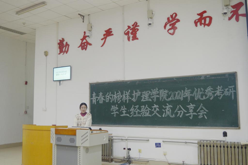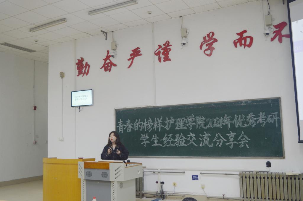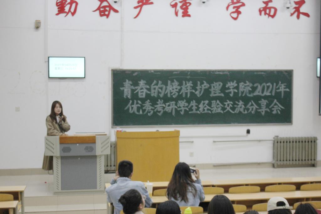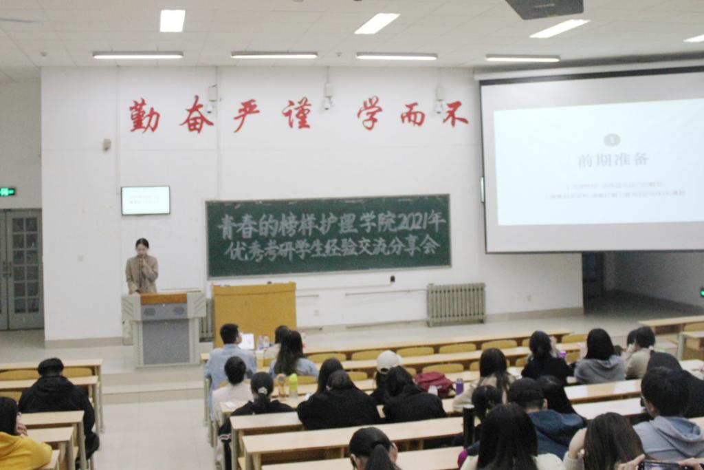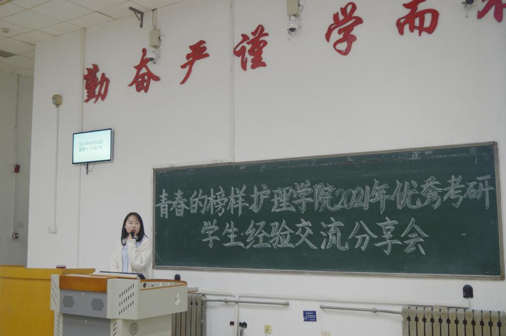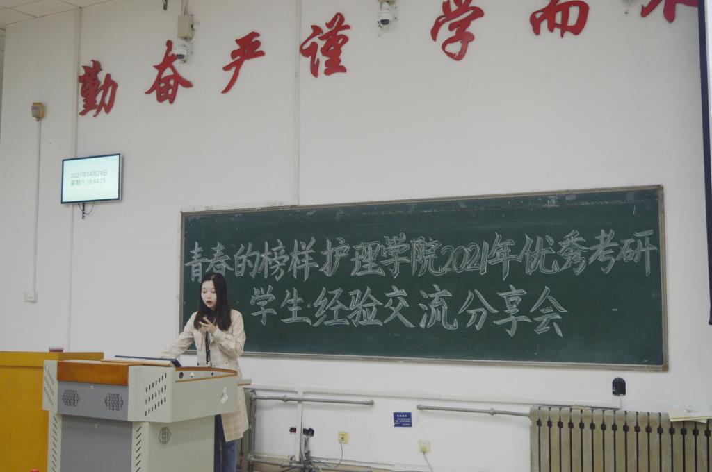 李俊菲向大家分讲述了自己的考研备考过程以及专业课的复习方法与技巧,掌握好基础知识,认真学习专业课尤其重要;姜轶清着重分享了考研过程中备战英语和护理综合的体会,提高效率、找对方法才是成功的诀窍;闫畅以英语学习作为切入点,结合自身经历提醒同学们英语和专业课重在日积月累、摆正心态,还向大家分享了应如何选择实习医院以及怎样平衡好实习与考研等心得体会。交流会后,八位优秀考研学生与大家积极互动,解答了同学们在备战考研路上的疑惑,并对同学们考研之路表达了美好的祝愿。