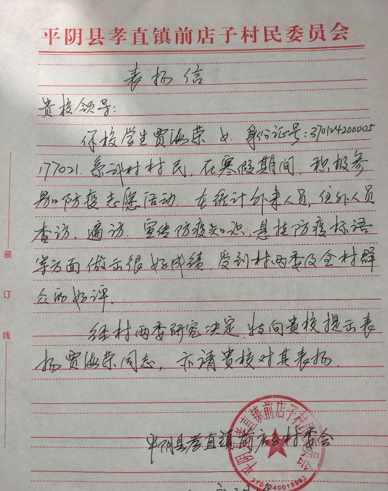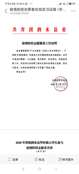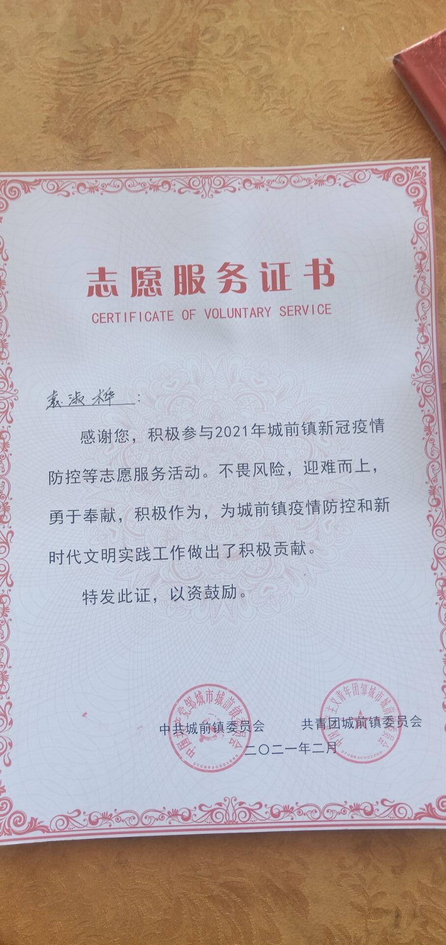 寒假回家后,为响应村里号召,贾海荣同学和其他6名大学生一起去村委会进行志愿活动。主要内容就是进行网上核酸检测的登记,以及进行防疫知识的宣传。通过这次志愿活动,贾海荣同学对村里的防疫措施以及经济发展等情况有了更加深入的了解,同时她也希望以后能更多的为村里服务,参与更多的志愿活动,为村庄发展贡献出一份力量。