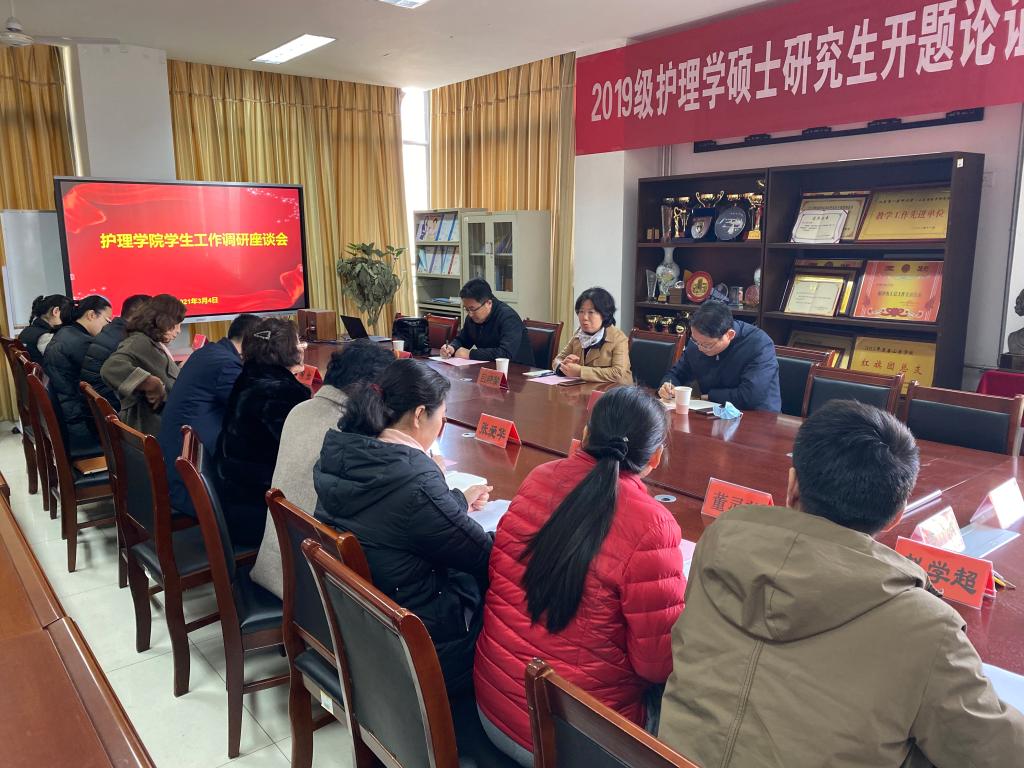 学院党委书记张延玲汇报了学院学生工作情况。近年来,在校(院)党委的坚强领导下,学院紧紧围绕落实立德树人根本任务,始终做到“五个坚持”,始终坚持安全第一,把学生安全稳定工作放在首位;始终坚持加强学风建设,塑造拼搏奋斗的山一大护理学子气质;始终坚持五育并举,营造“爱党爱国爱校爱护”的浓厚氛围;始终坚持实践育人,不断完善“1147”第二课堂育人体系;始终坚持强化队伍建设,打造专家化的学生工作队伍,学院学生工作取得比较明显的成效。但是,仍然存在不少问题,下一步将坚持问题导向,做好整改落实,推动学院学生工作再上更大台阶。