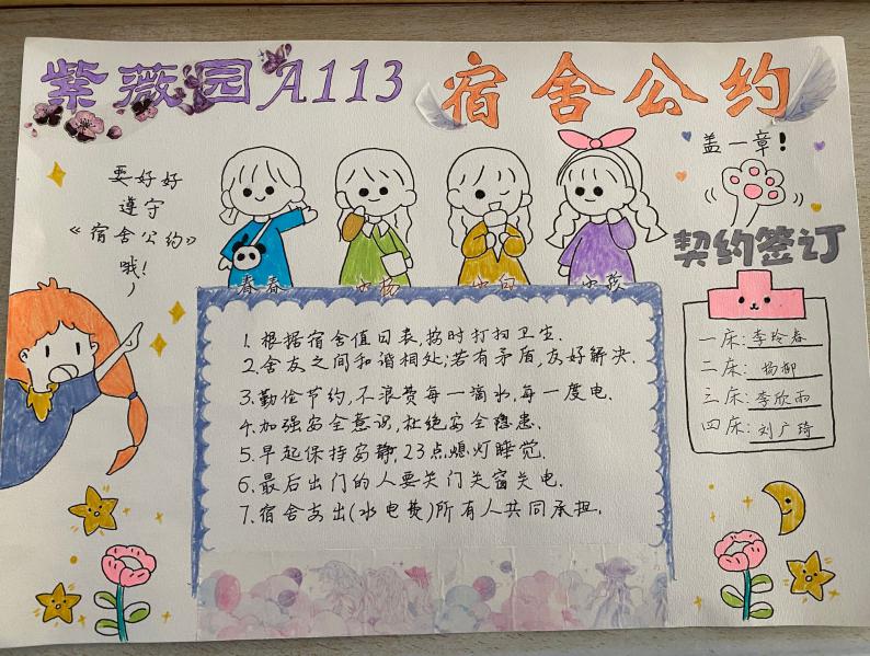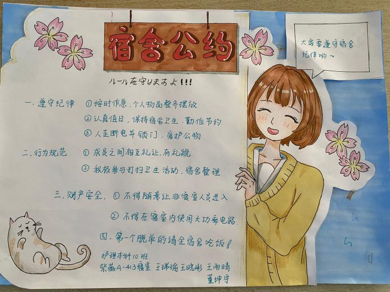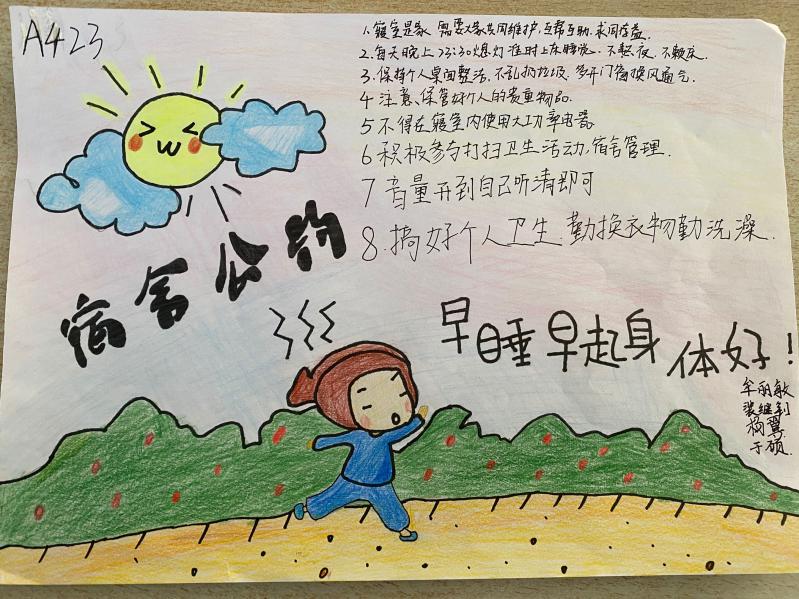 此次活动旨在号召同学们共同设计本宿舍独一无二的宿舍文明公约,然后由学院宿舍文明公约评审组对上交作品进行评选,并对优秀作品予以表彰。本次活动中,同学们态度积极,充分发挥个人所长,齐心协力,以宿舍为单位共同完成宿舍文明公约的创作,涌现出诸多优秀作品,表现了同学们的发散思维和独特创新能力,体现了护理学子的向心力和凝聚力,彰显了护理学子积极向上、锐意进取的精神风貌。