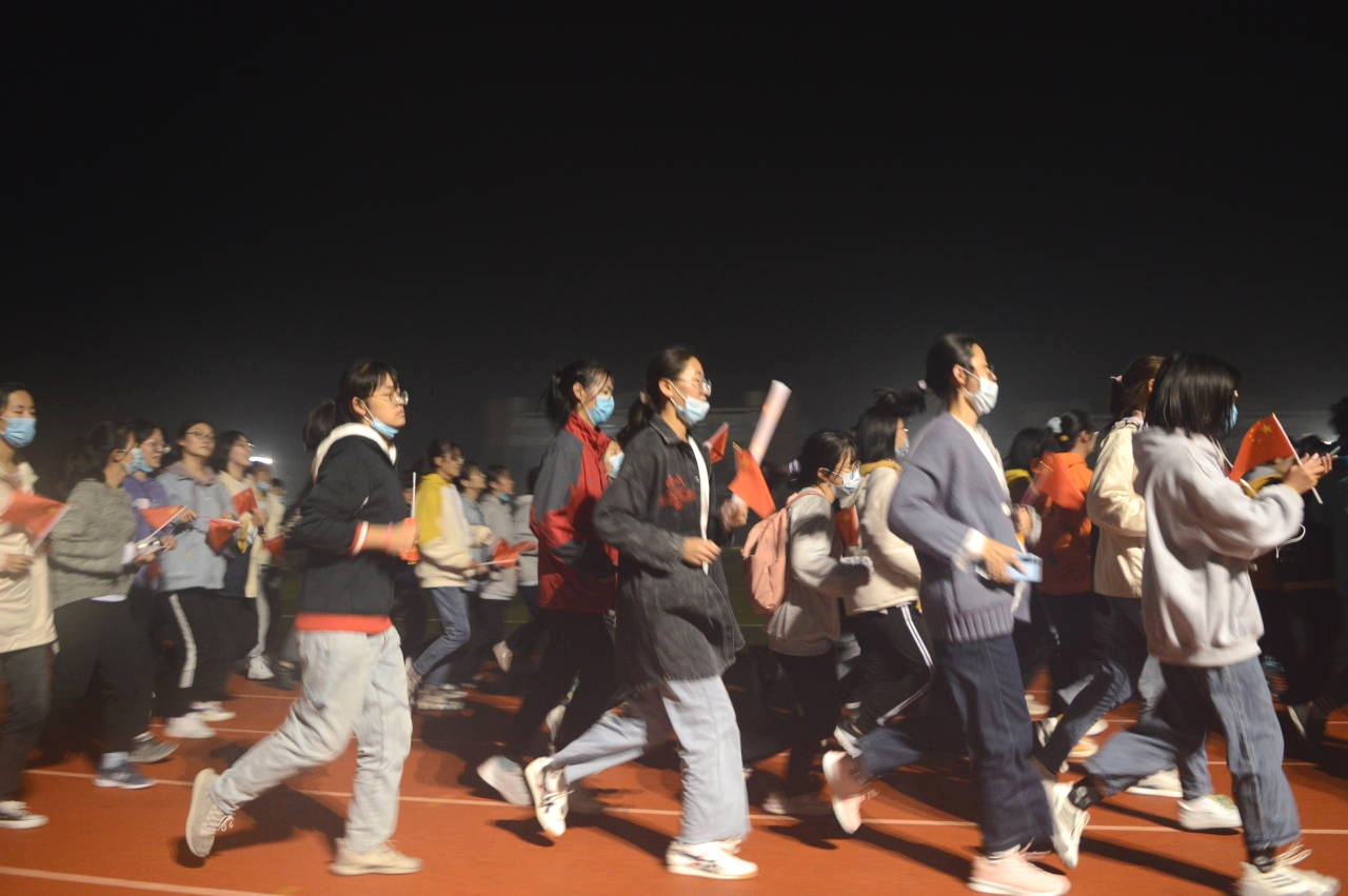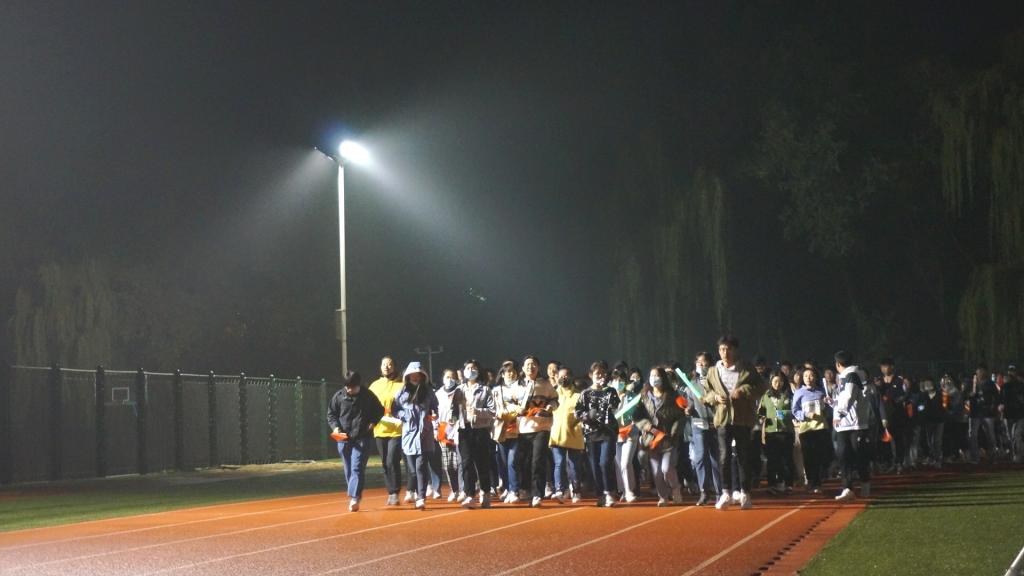本次活动分为“爱党”“爱国”“爱校”三组 ,每组均由四个班级共同完成夜跑。同学们在比赛中发扬“友谊第一、比赛第二”的精神,齐心协力到达终点,赢得了大家的一致喝彩。学院学生会文体部成员为大家带来了精彩的歌舞表演,充分调动了大家的运动健身热情。活动最后,全体人员合唱《我和我的祖国》,歌颂党、歌颂祖国,将现场的气氛推向高潮。