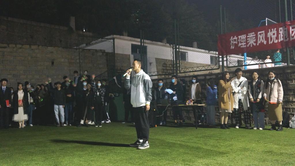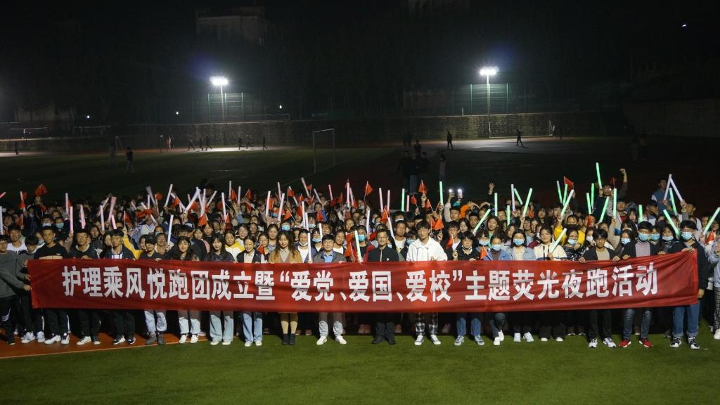 张延玲为活动致辞,他表示,现在很流行一句话“要么运动,要么读书,身体与灵魂总要有一个在路上!”通过科学运动,我们能有一个更加健康强壮的体魄;通过读书,我们能有一个更加积极乐观的人生态度。今天学院举办乘风悦跑团成立暨“爱党、爱国、爱校”主题荧光夜跑活动,就是对“身体与灵魂总要有一个在路上”的实际践行。奋斗的青春最美丽,不管是“几零后”,最重要的是“努力后”“奋斗后”。 乘风破浪会有时,直挂云帆济沧海。同学们经过了高考的洗礼,有了无悔的昨天,希望大家通过努力、通过奋斗,更有一个对未来无憾的今天,有一个更加灿烂的明天,真正成为社会栋梁之才。