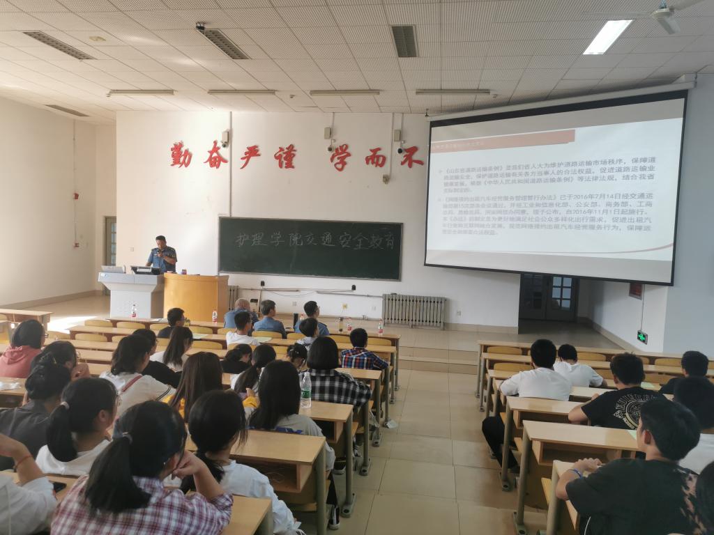 根据校(院)“不忘初心、牢记使命”主题教育工作安排,结合开展“平安校园”创建活动,确保国庆节期间师生安全稳定。9月26日下午,beat365邀请泰安交通运输安全综合执法支队,在教学南楼C2024教室,为2019级200余名新生开展校园交通安全知识专题讲座,进一步增强大学生对非法营运的认识,尽早培养拒乘“黑车”的安全保护意识。